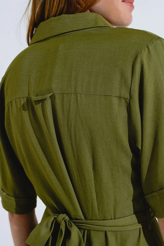 Green Maxi Shirt Dress with Polo Collar