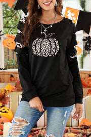 Halloween Leopard Pumpkin Print Cut-out Pullover Sweatshirt