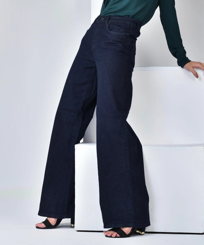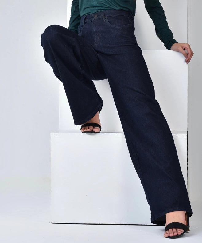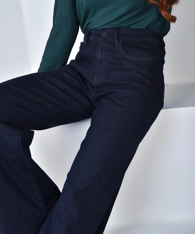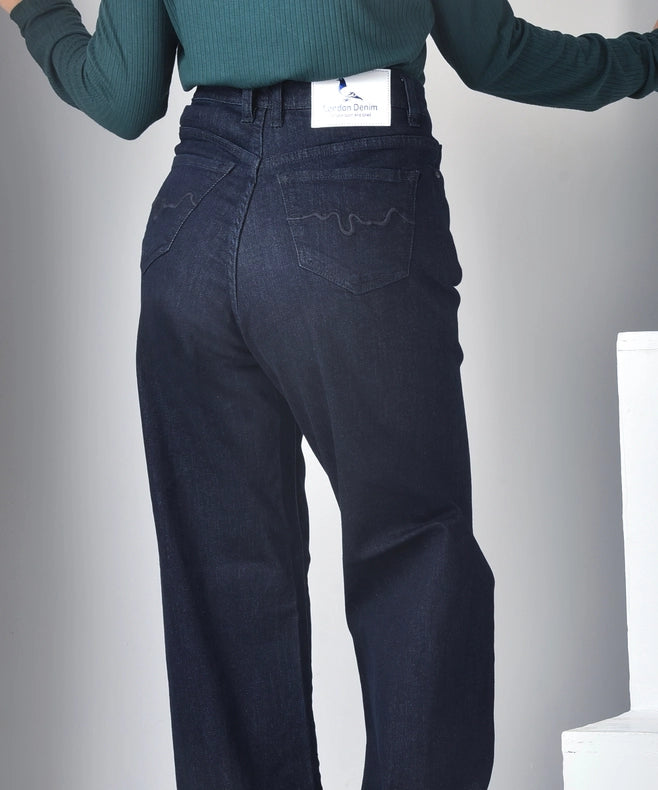 Step into style with the Hampton Relaxed Wide Leg jeans. The high-rise silhouette and loose fit from the thigh down provide both comfort and sophistication. Made with stretchy dark indigo denim, these jeans feature a logo patch, belt loops, and five pockets for added functionality. Machine washable for easy care. Must-have denim for any fashion-forward wardrobe.