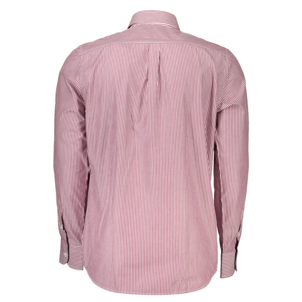 This long-sleeve shirt features a narrow fit with a French collar and single-button cuffs accented by contrasting inner details. It includes buttons and contrasting elements, along with a logo, crafted from 100% organic cotton for a refined and sustainable choice.