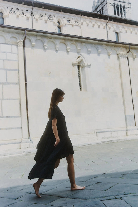 Her Own Hero Dress - with Round Frayed Neckline BLACK-Dress-A Perfect Nomad-S-Urbanheer