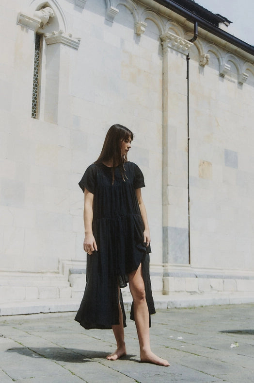 Her Own Hero Dress - with Round Frayed Neckline BLACK