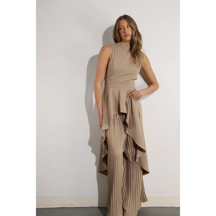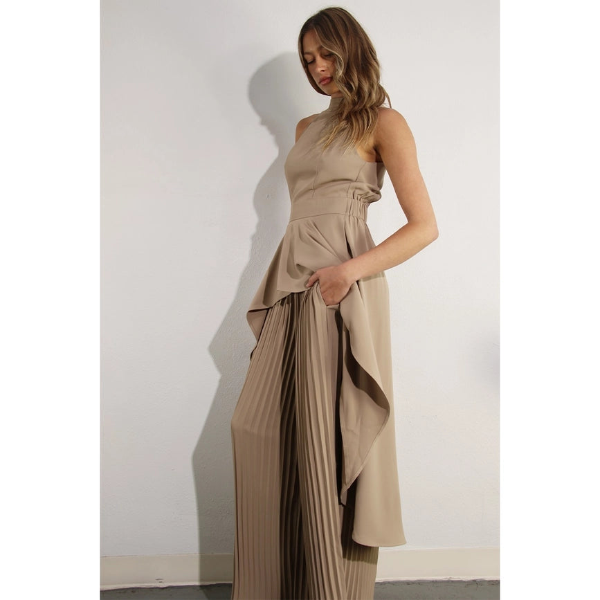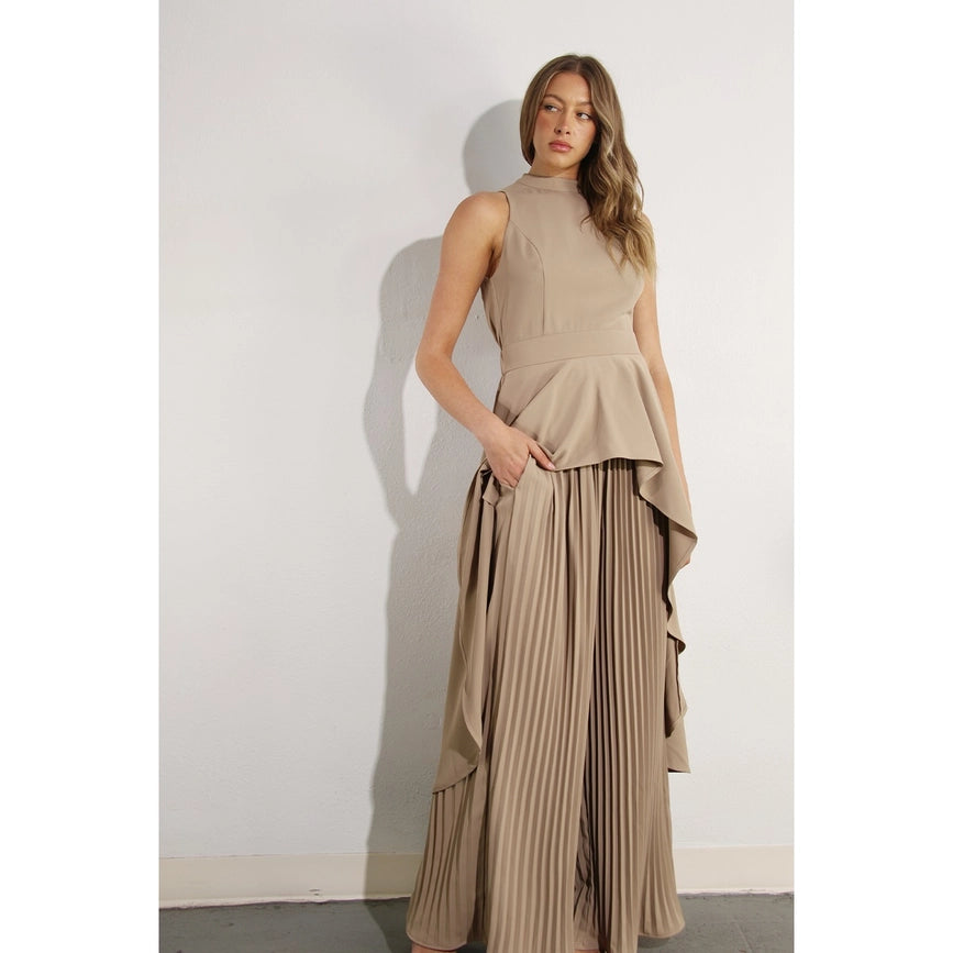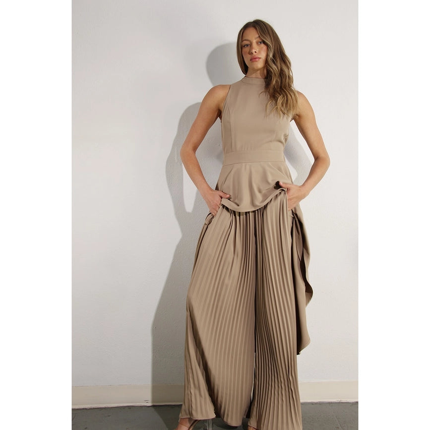 Hi-Low Hem Dressy Top and Pleated Pants Set ASH TAUPE
