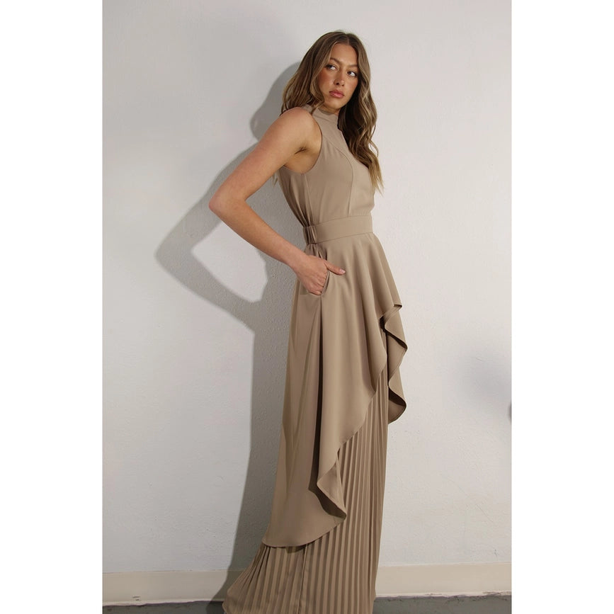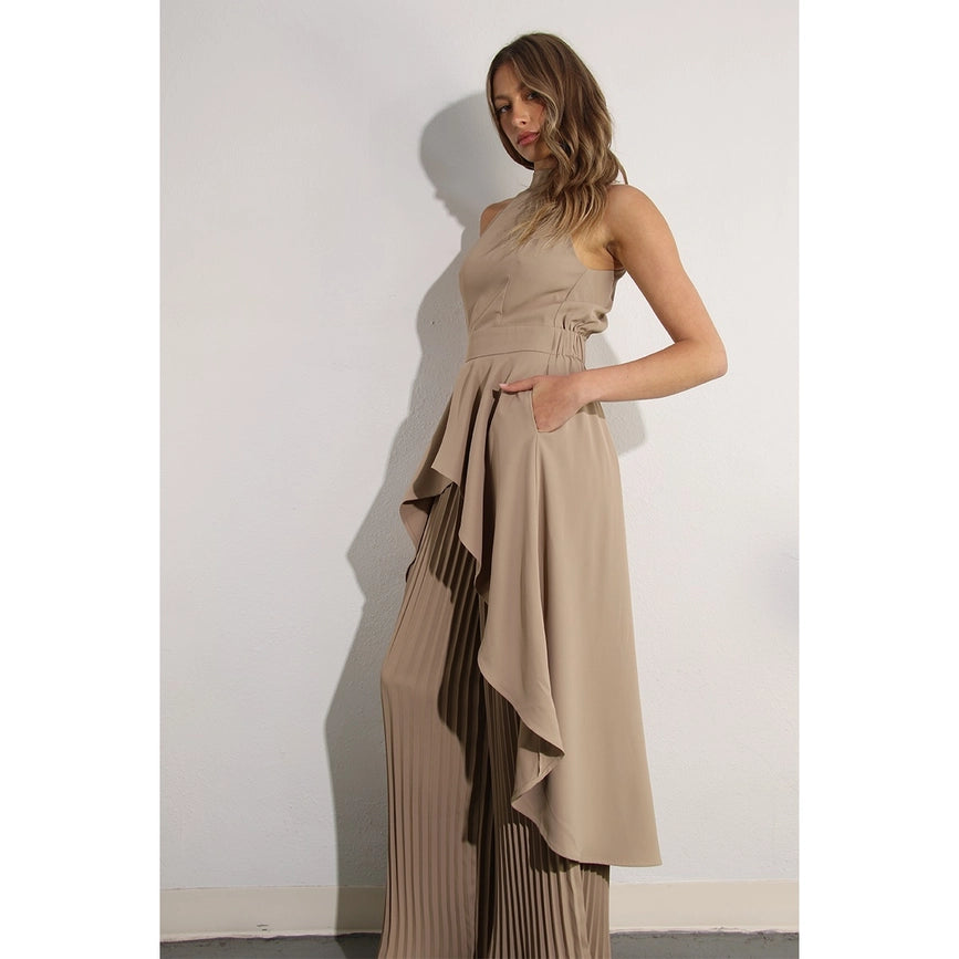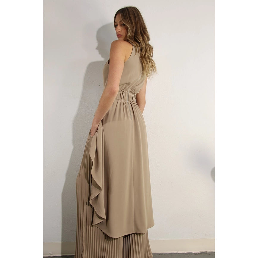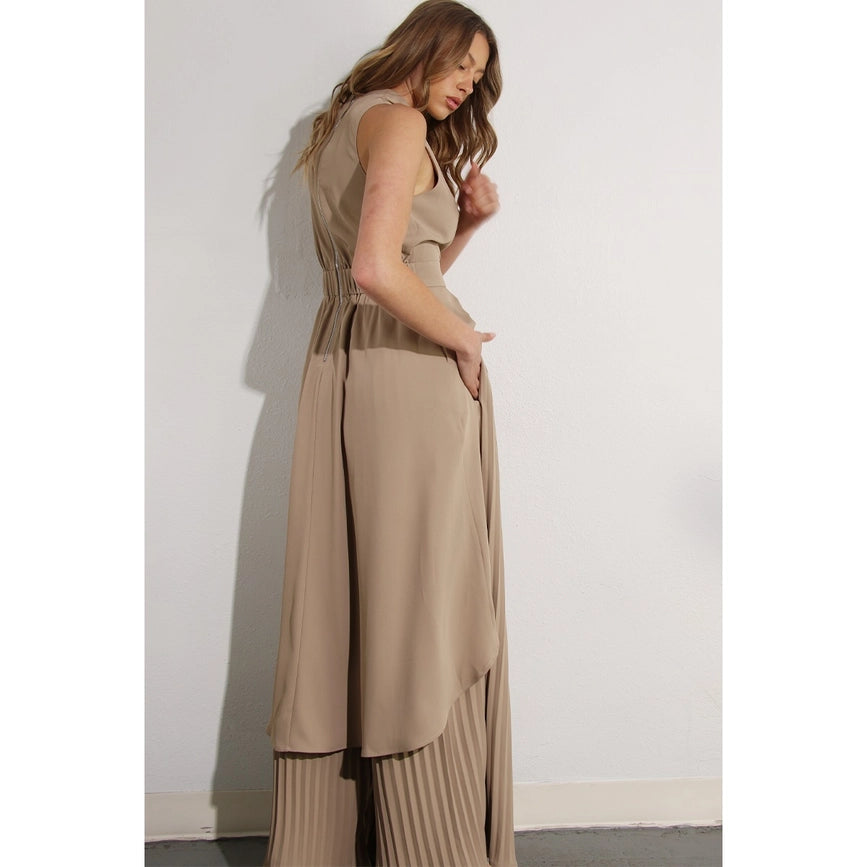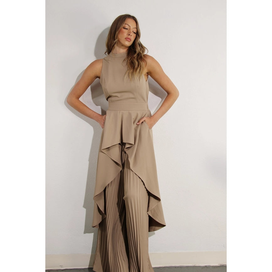 Hi-Low Hem Dressy Top and Pleated Pants Set ASH TAUPE