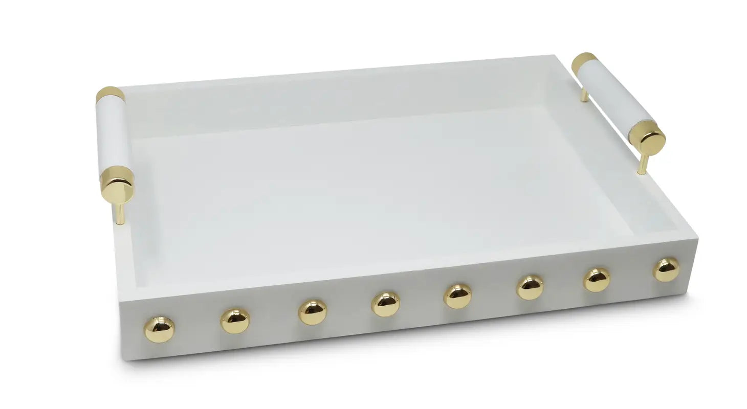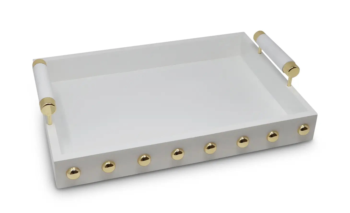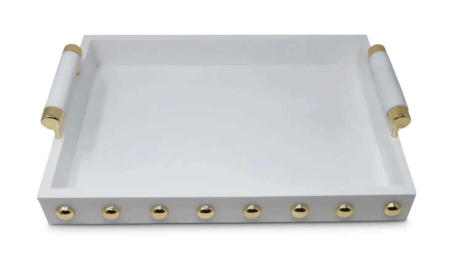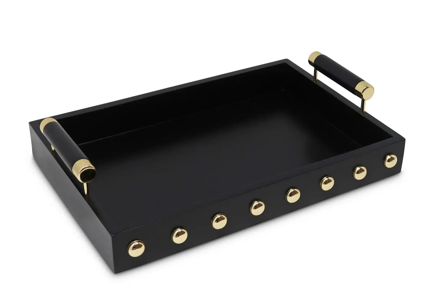 High Gloss Decorative Tray With Gold Ball Deign And Handle