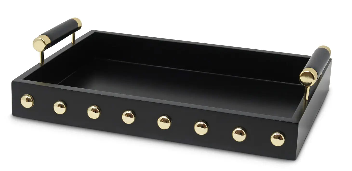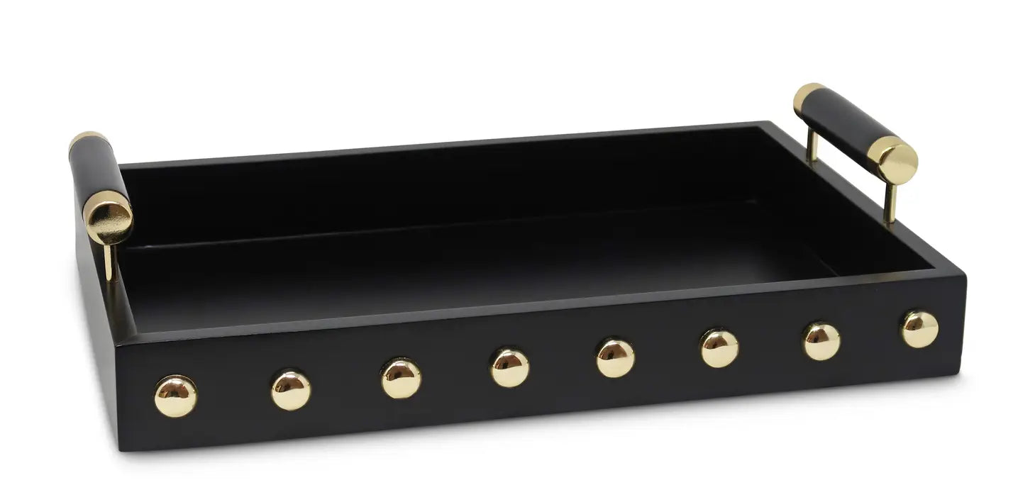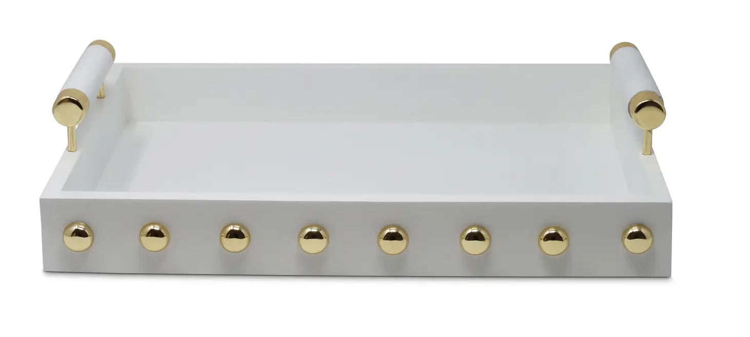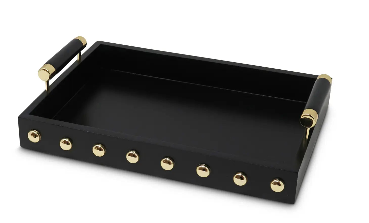 High Gloss Decorative Tray With Gold Ball Deign And Handle