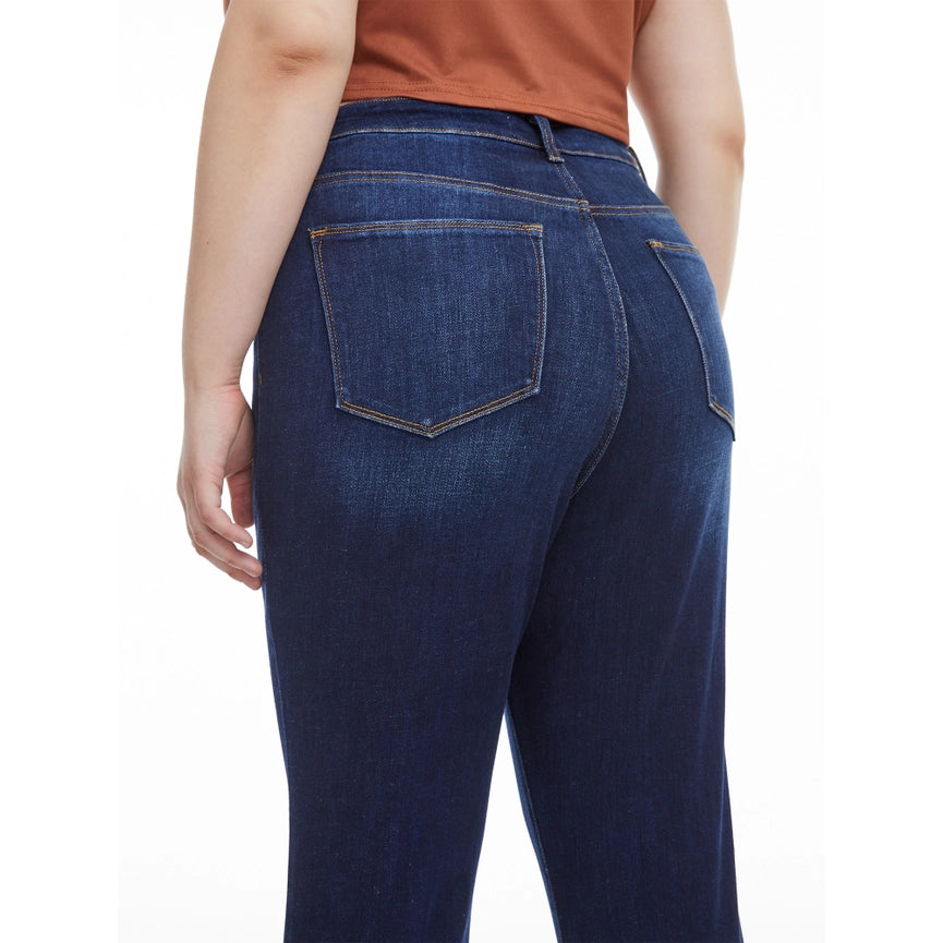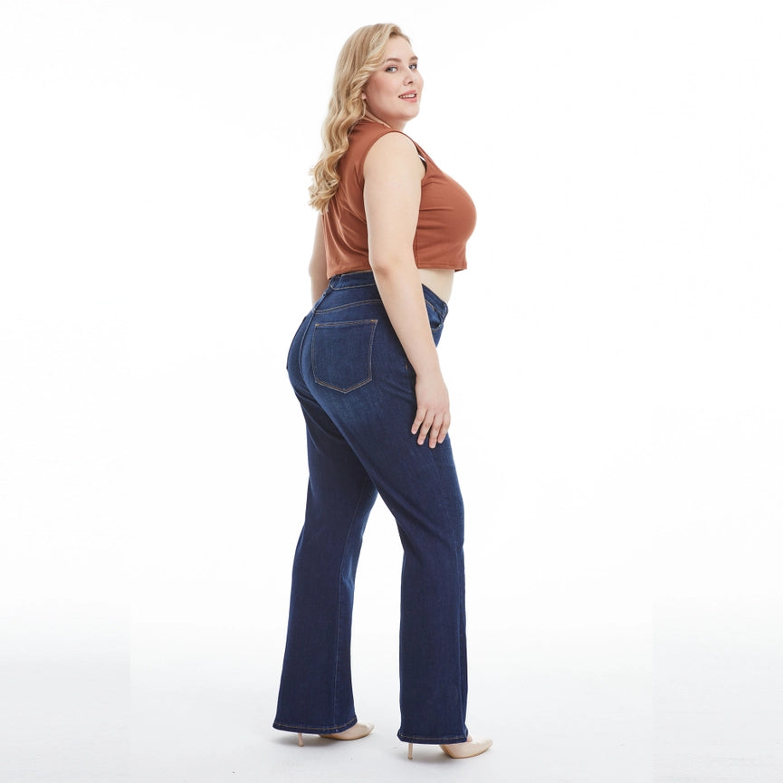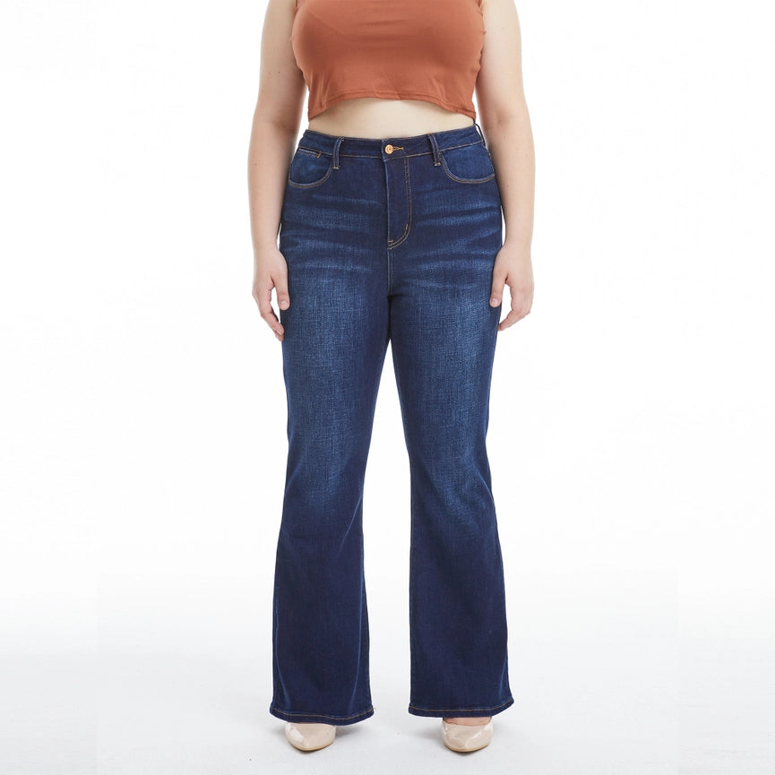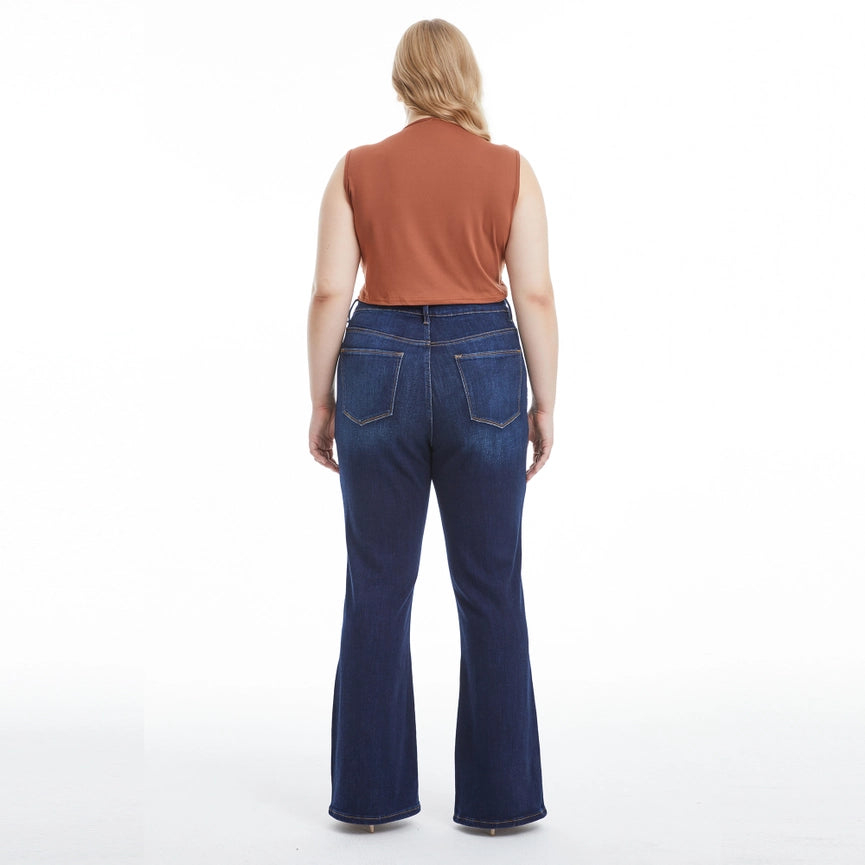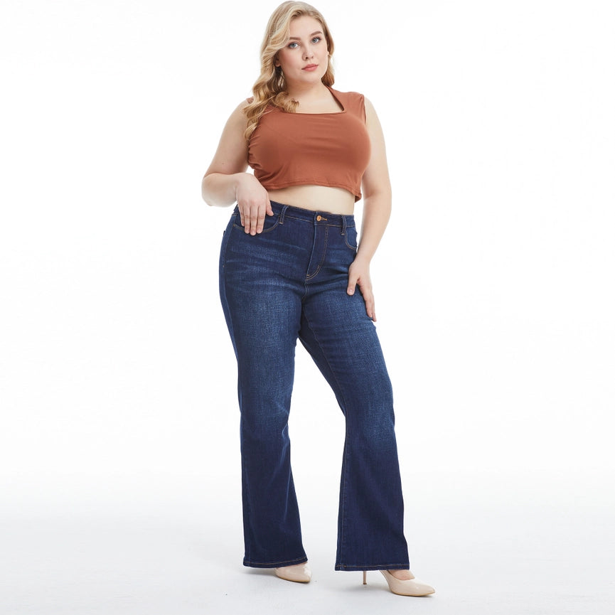Elevate your denim game with our High Rise Flare Jeans. Crafted from super stretch denim, these dark wash jeans offer ultimate comfort and a figure-flattering fit for plus sizes. With a high rise waist, zipper fly, and natural washing and whisker effects, these jeans will effortlessly enhance your curves. The finished hem adds a touch of sophistication. Machine washable for easy care.