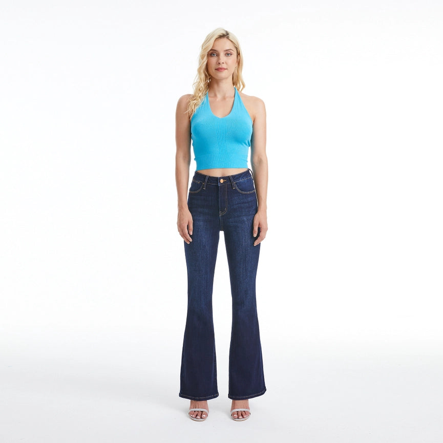 High Rise Flare Jeans with Finished Hem DARK WASH
