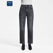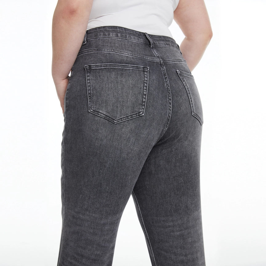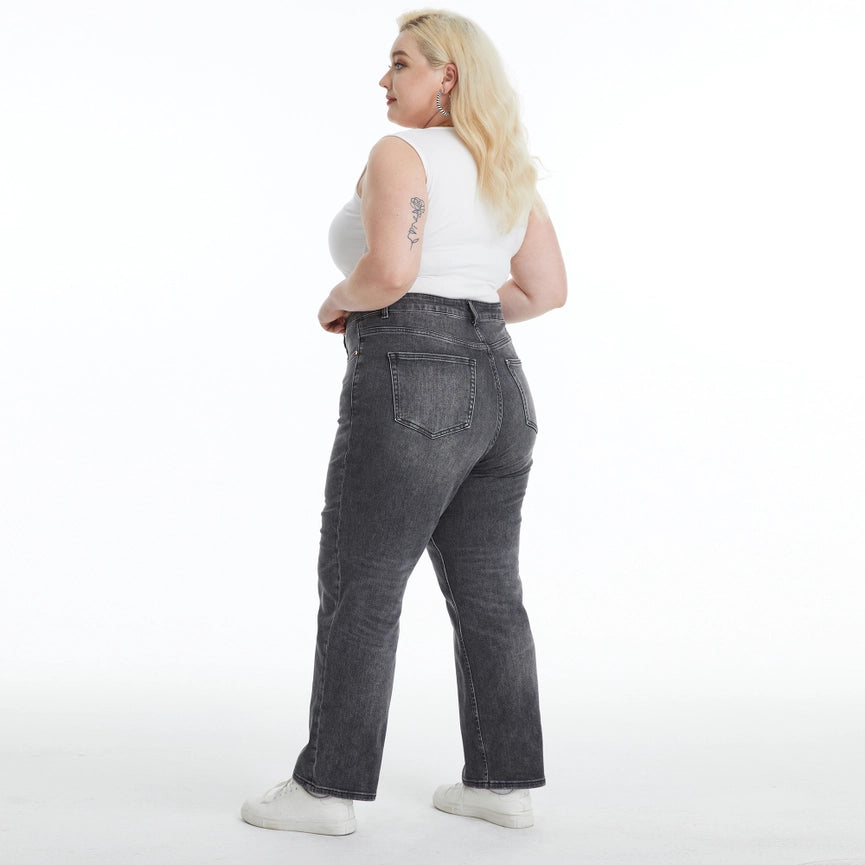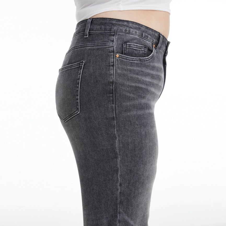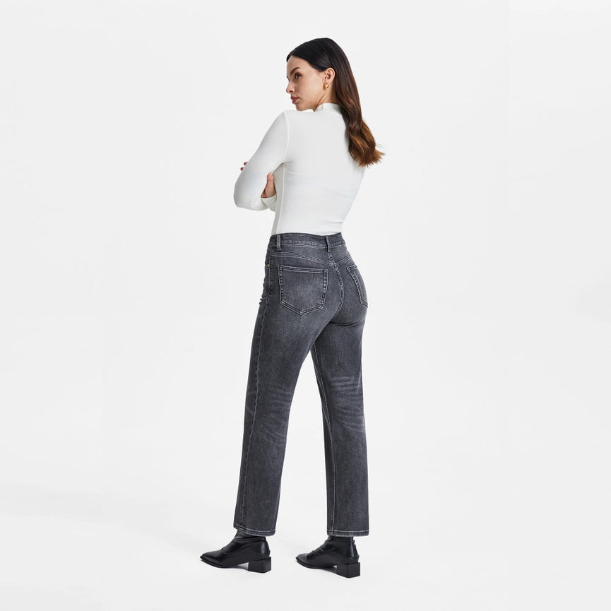 High Rise Straight Jeans with Finished Hem BLACK STONE