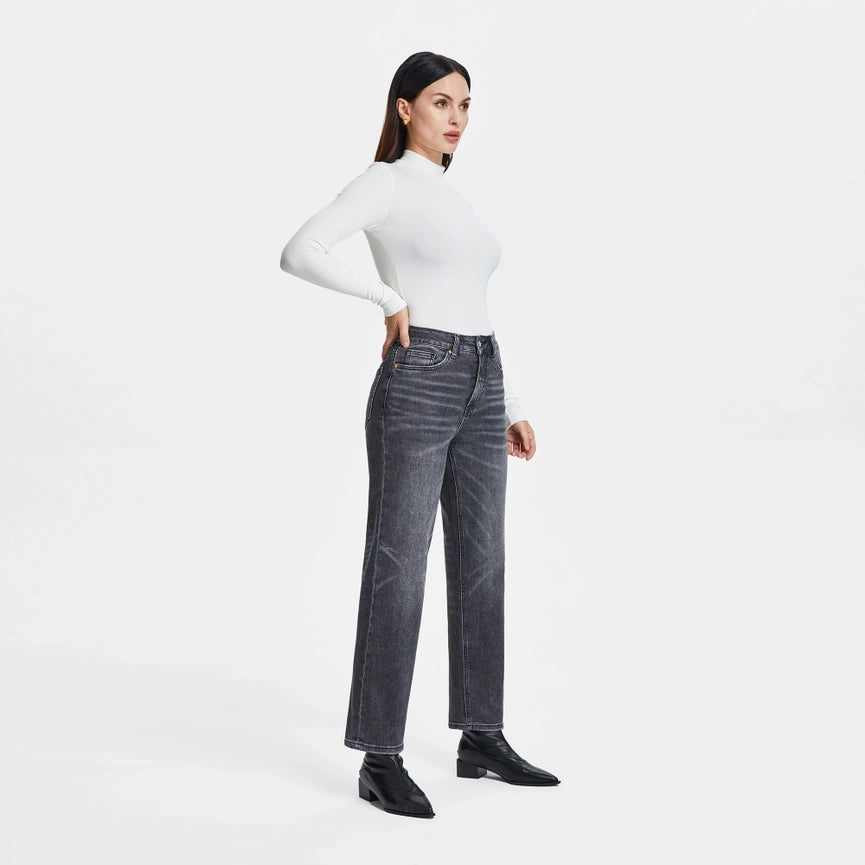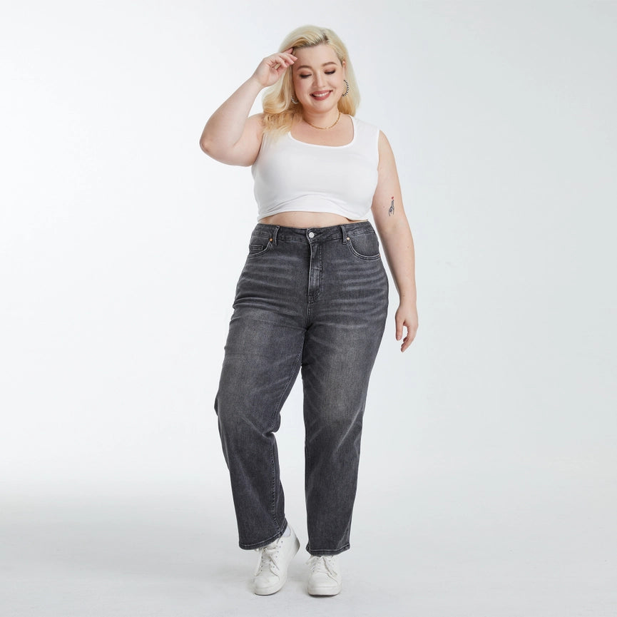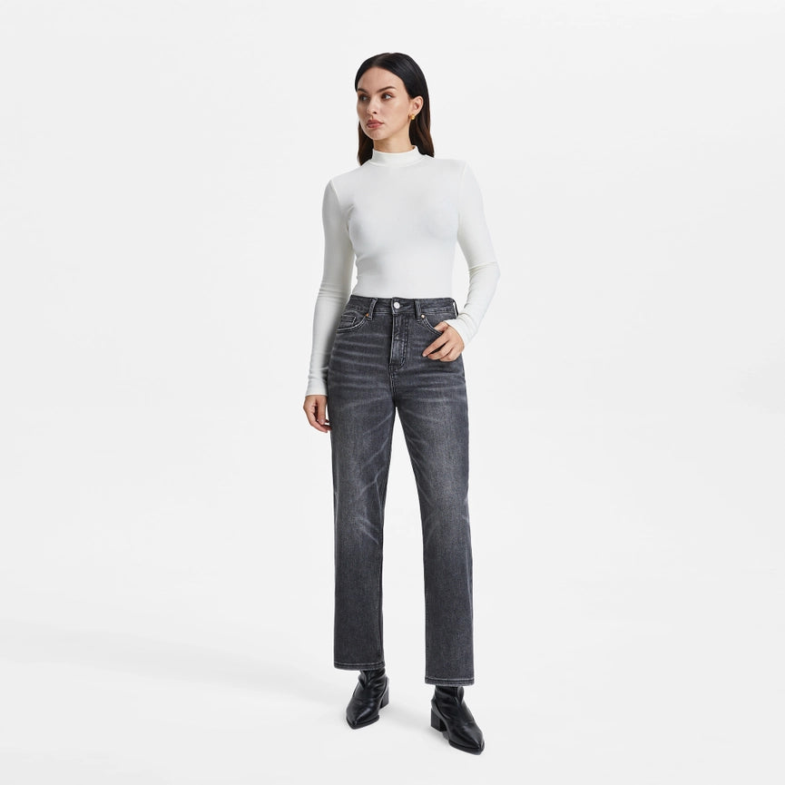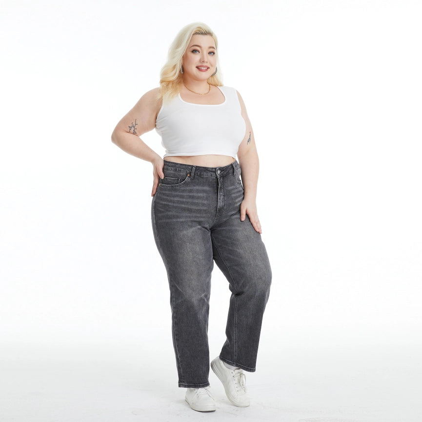 Effortlessly stylish and comfortable, our High Rise Straight Jeans with Finished Hem are made from a blend of 92% cotton, 6% polyester, and 2% spandex for the perfect amount of stretch. The high rise waist, five pockets, and zipper fly offer both functionality and fashion. With a natural washing and whisker effect, these black stone jeans are perfect for the fall and winter seasons.