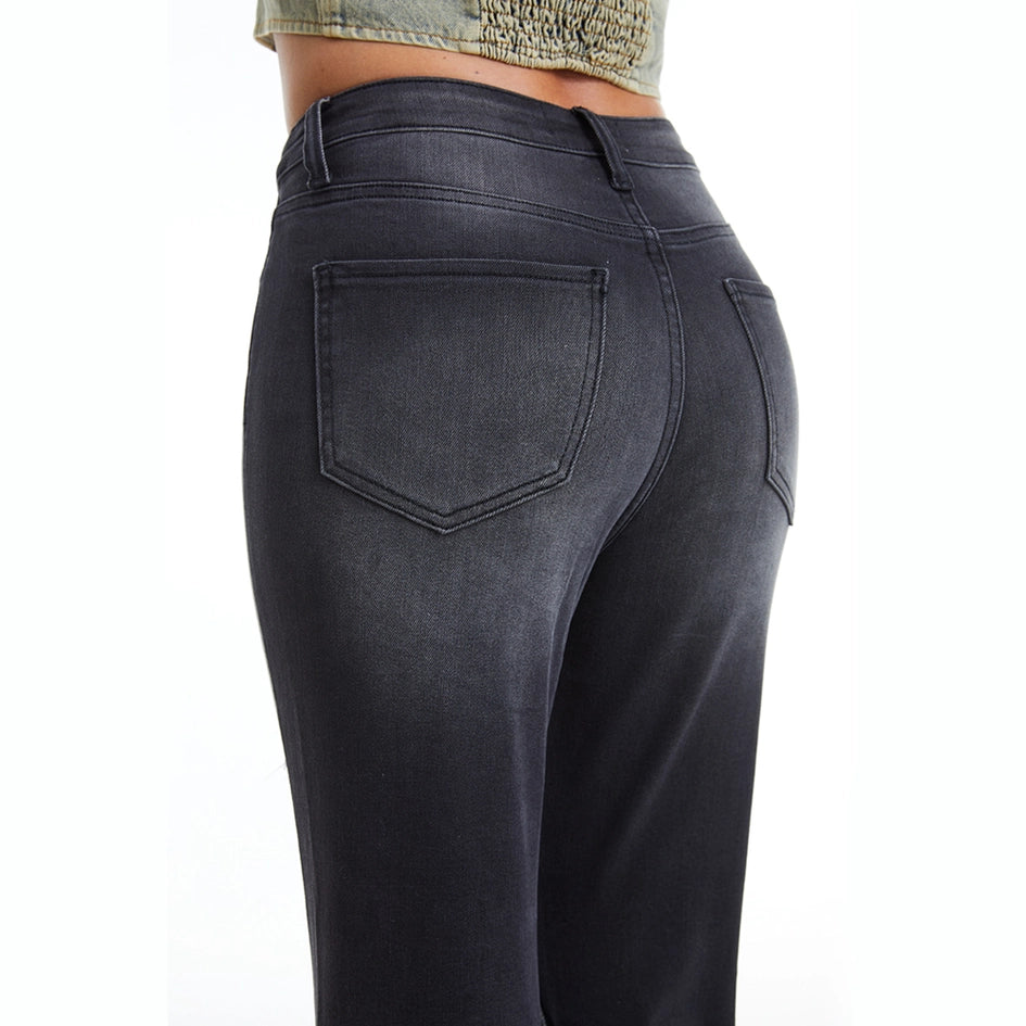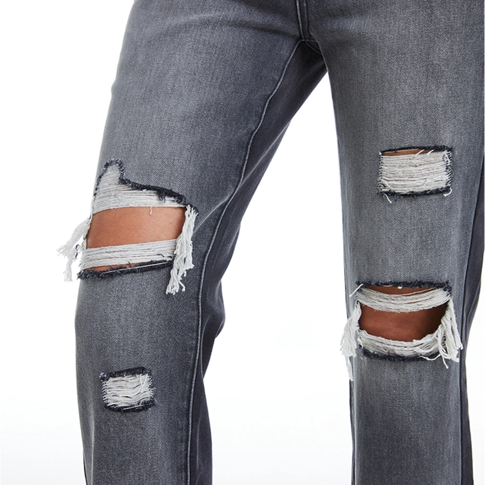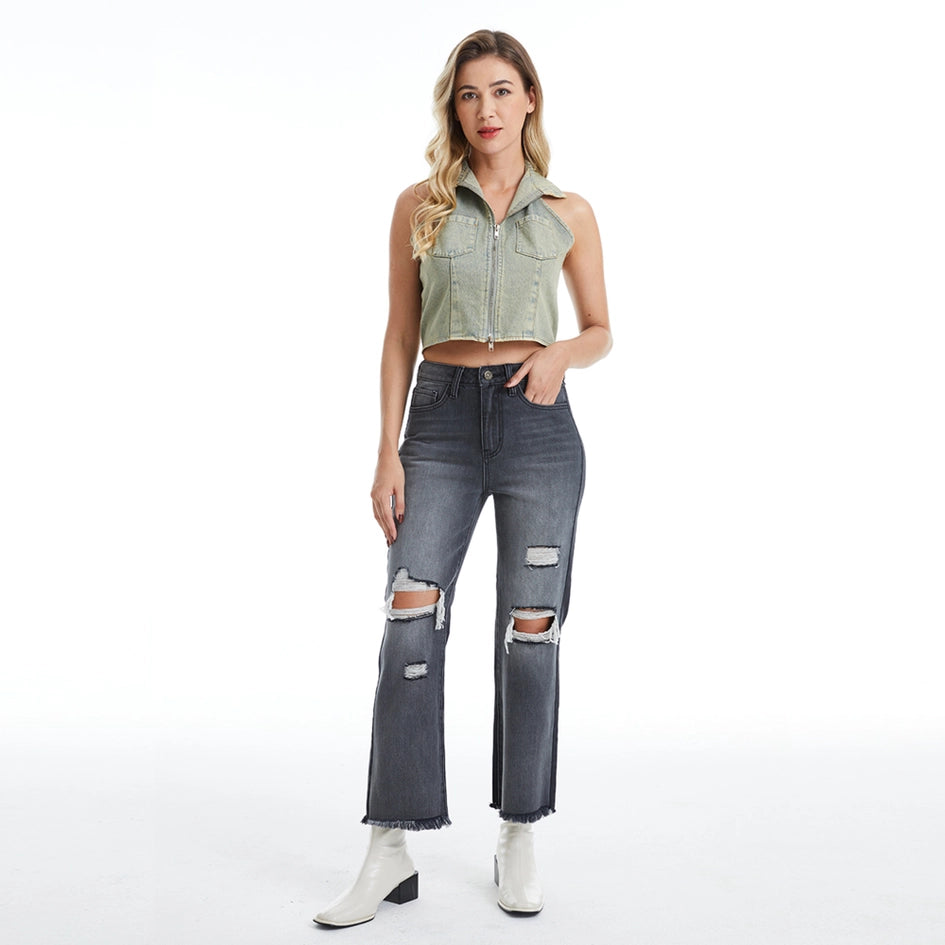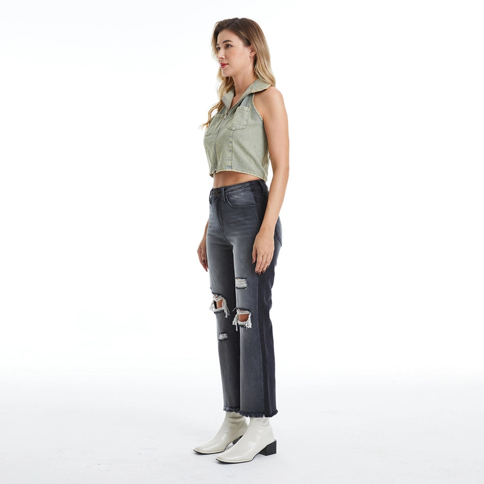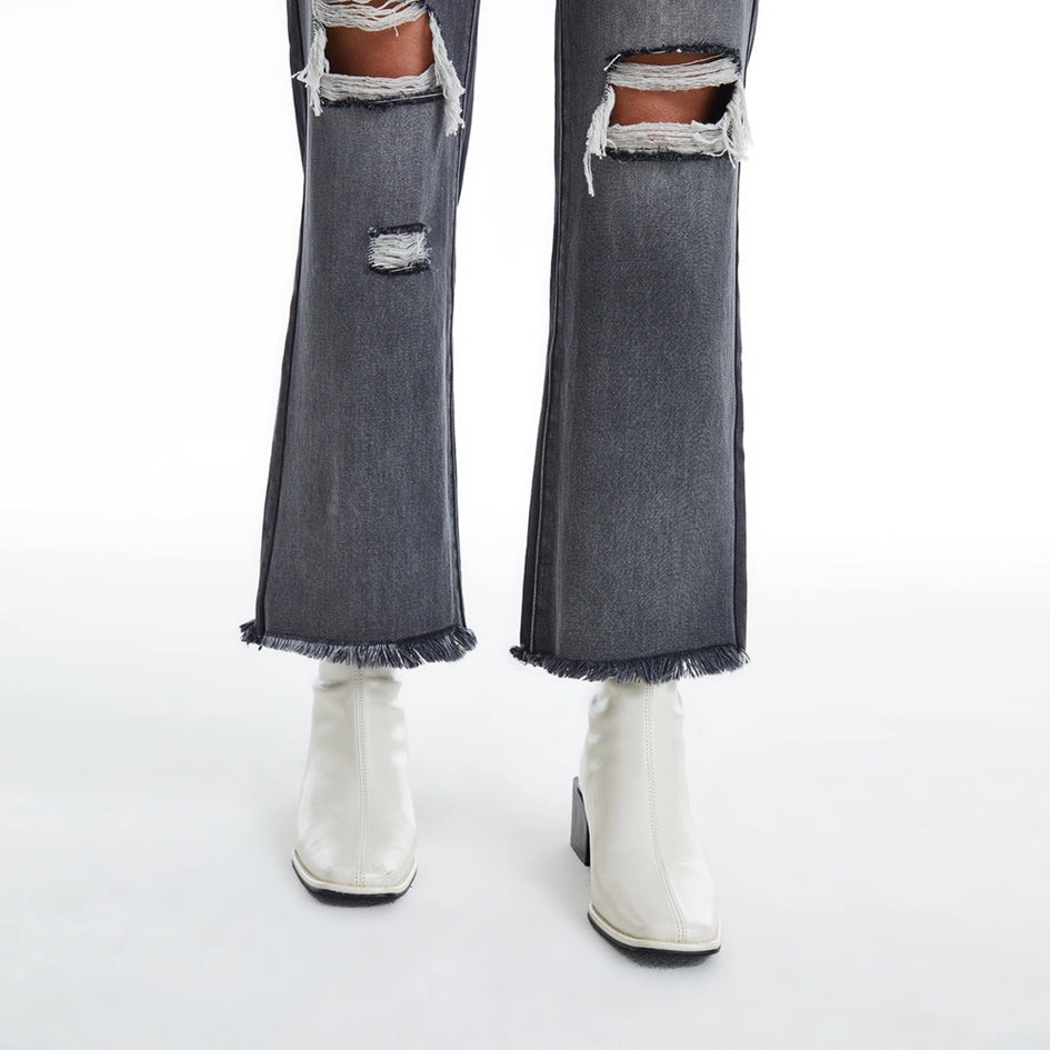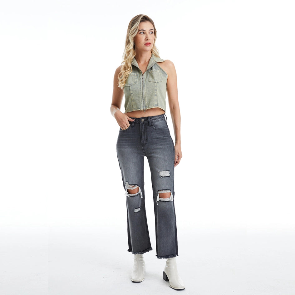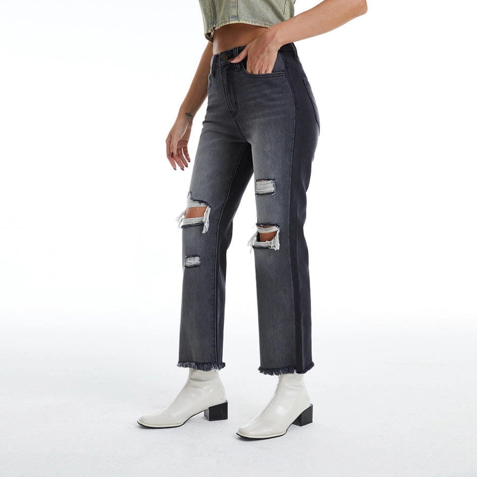 High Rise Straight Jeans(Frayed Hem,Two Tones) BLACK ASH