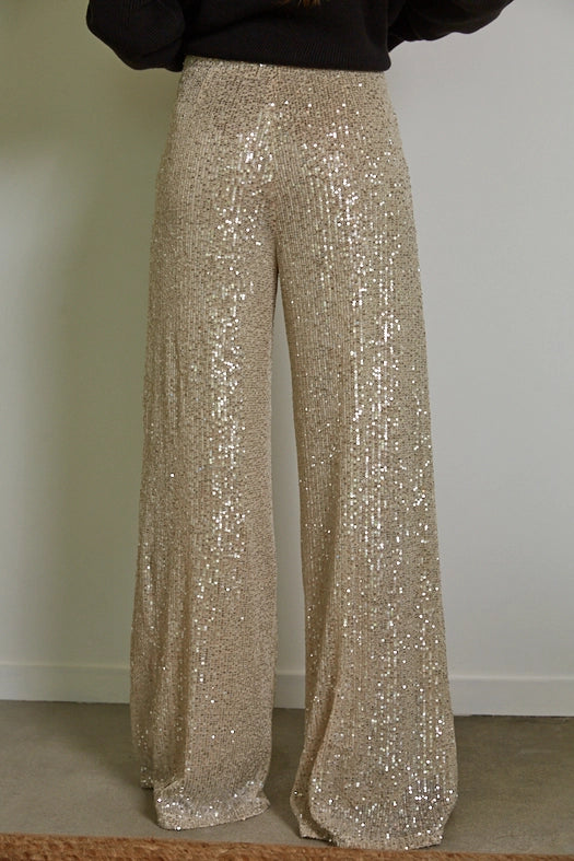 Upgrade your party looks with our Club Colby high waisted sequin flare pants. These pants are designed to make a statement with their dazzling sequin details and full lining for added comfort. The high waist not only adds style but also creates a flattering silhouette. Perfect for a night out or any festive occasion.