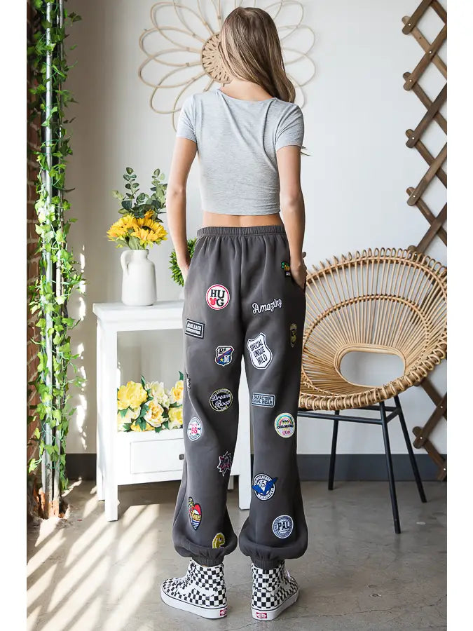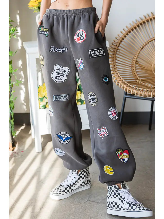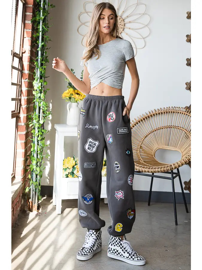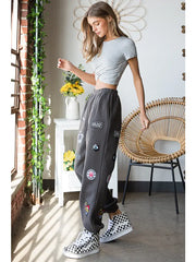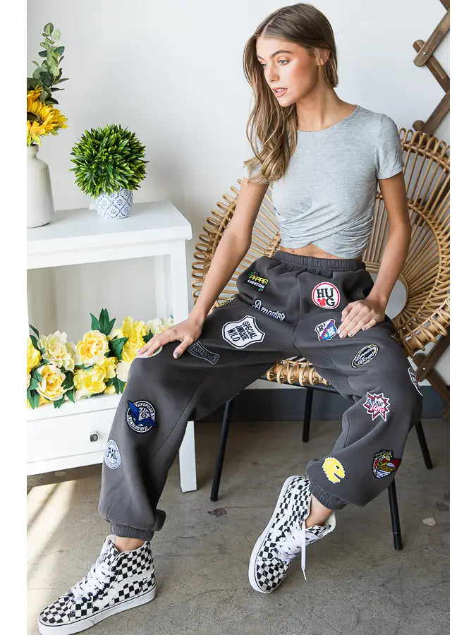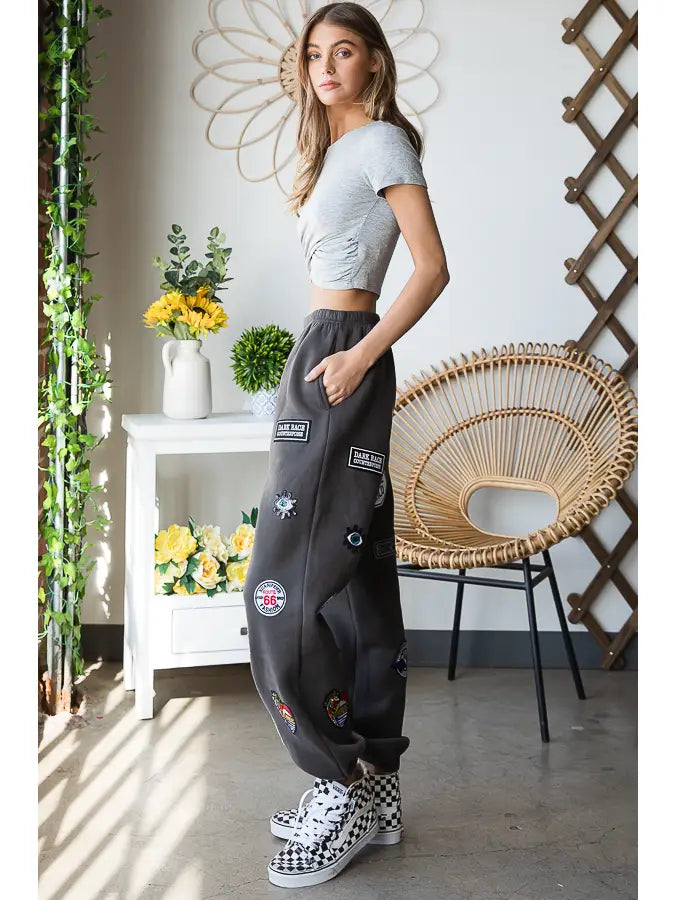 Hight Waist Multi Patches Jogger Pants CHARCOAL