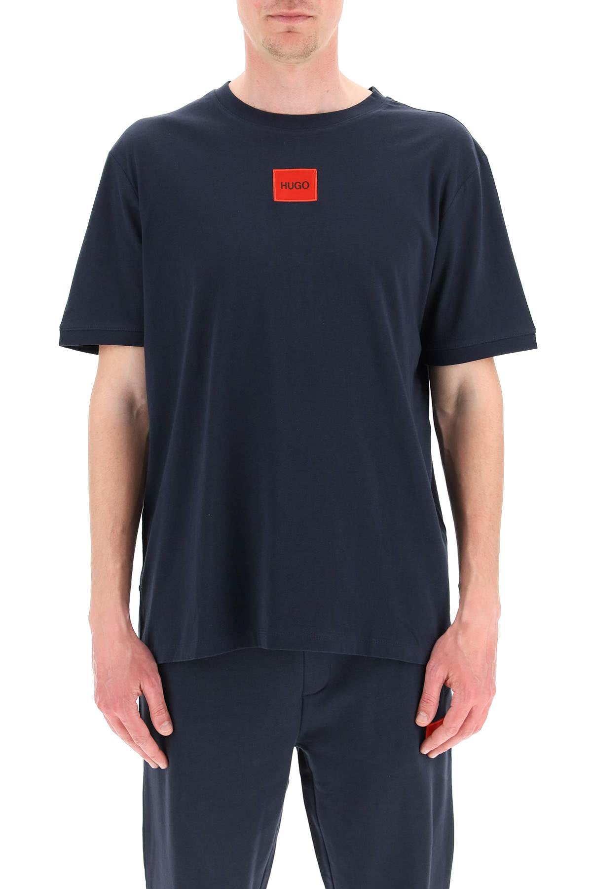 Crafted from responsibly-sourced cotton jersey, this Hugo T-shirt showcases a vibrant neon yellow logo label and is designed with rib trims for a modern touch. Engineered for comfort and style, it is cut to a regular fit. Perfect for fashion-forward individuals who value sustainability.