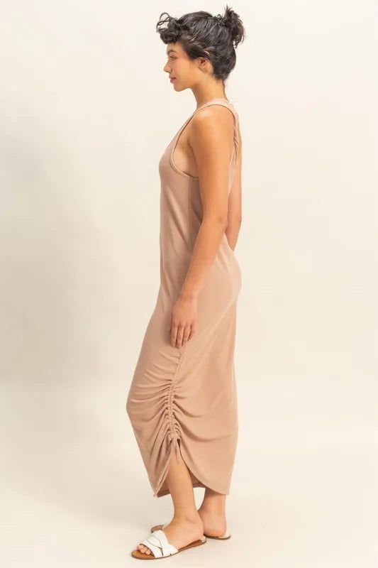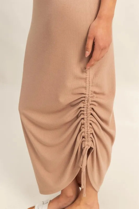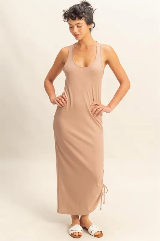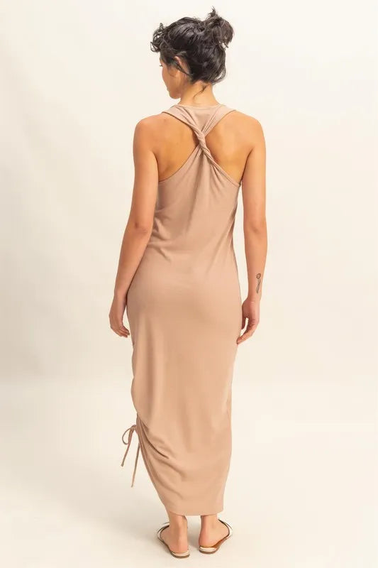 HYFVE Scoop Neck Side Tie Detail Midi Dress-HYFVE-DARK TAUPE-S-Urbanheer