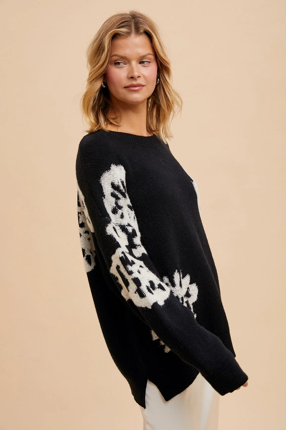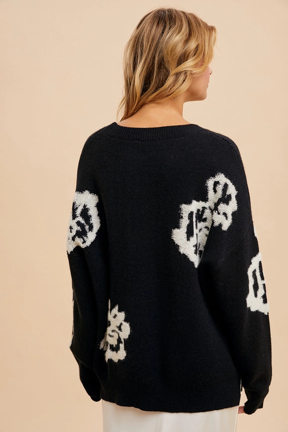 This Intarsia Floral Knitted Sweater features a beautiful floral design and a comfortable ribbed round neck for a stylish and cozy fit. Its intricate knitting and ribbed bottom hem banding add texture and warmth. Elevate your winter wardrobe with this must-have sweater.