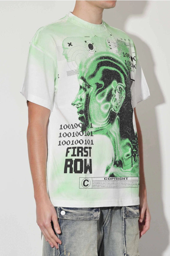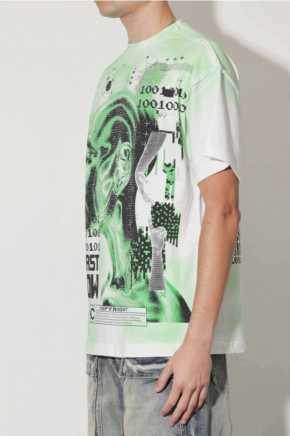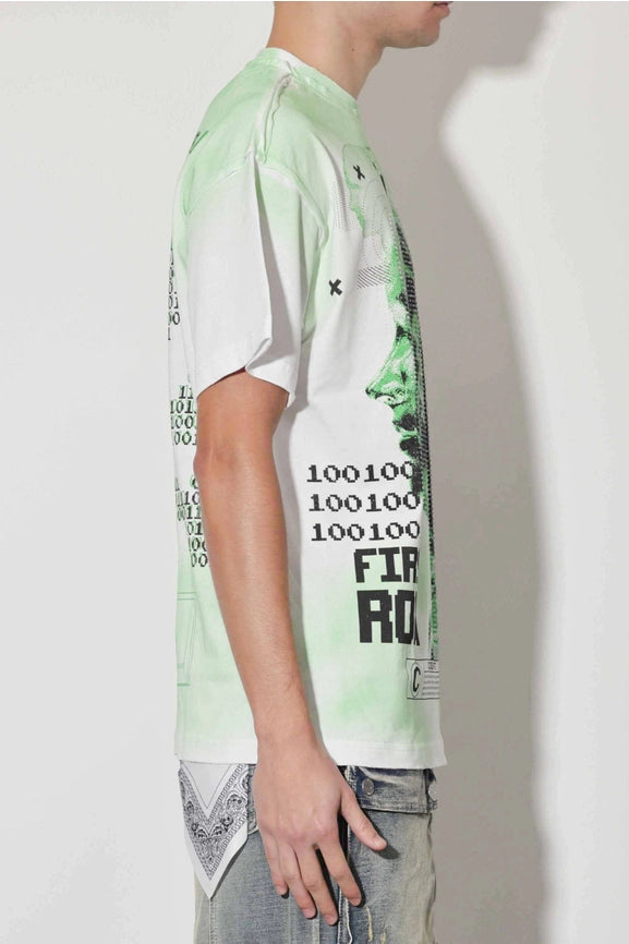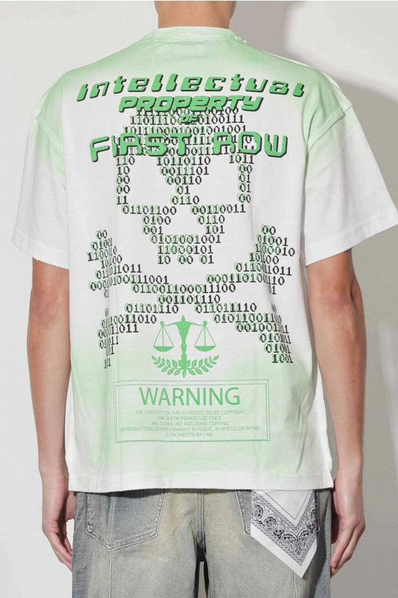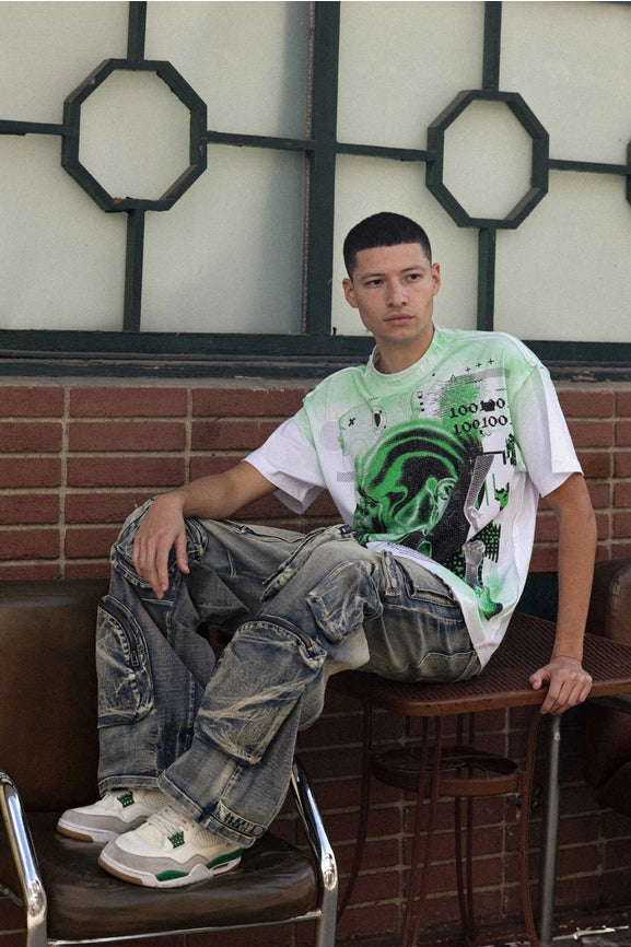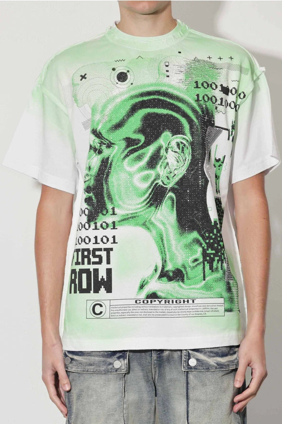 Experience the perfect blend of comfort and style with our Intellectual Property Sprayed Tee. Crafted from 100% cotton, this tee features a high quality sprayed premium graphic print with sparkling rhinestone details. The flat hemline and comfy box fit, along with short sleeves and a crew neck, make it a must-have addition to your wardrobe.
