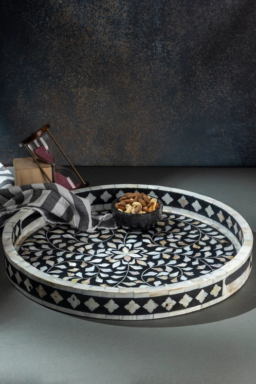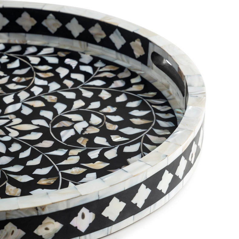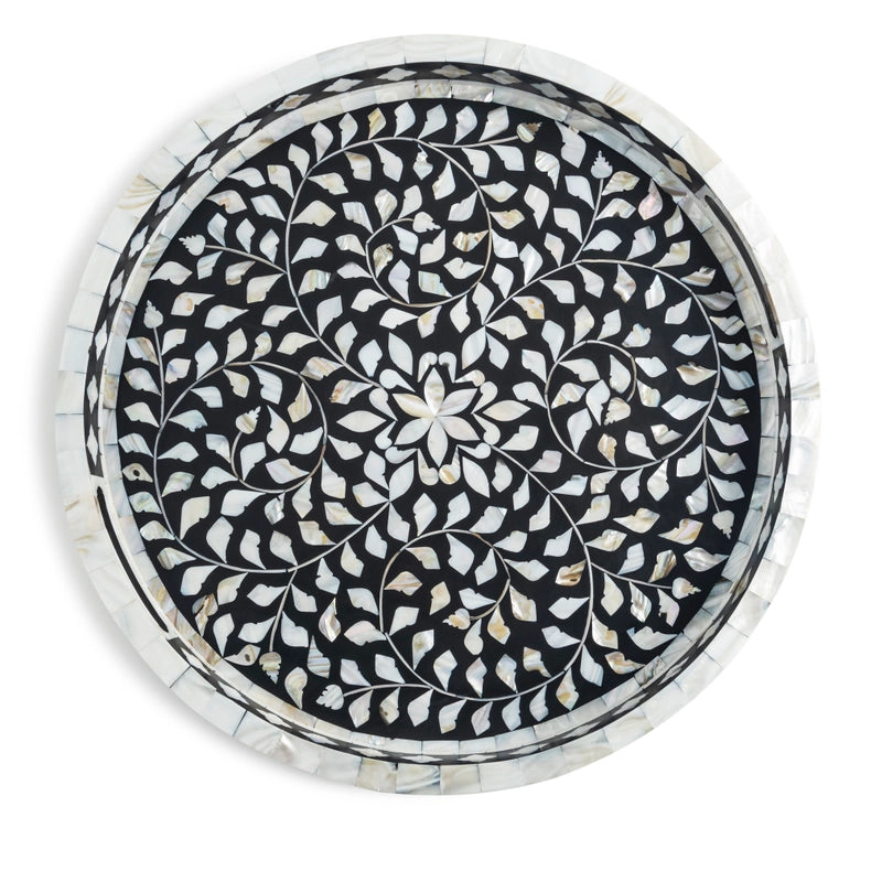 Jodhpur Mother of Pearl Tray - Black, 18"