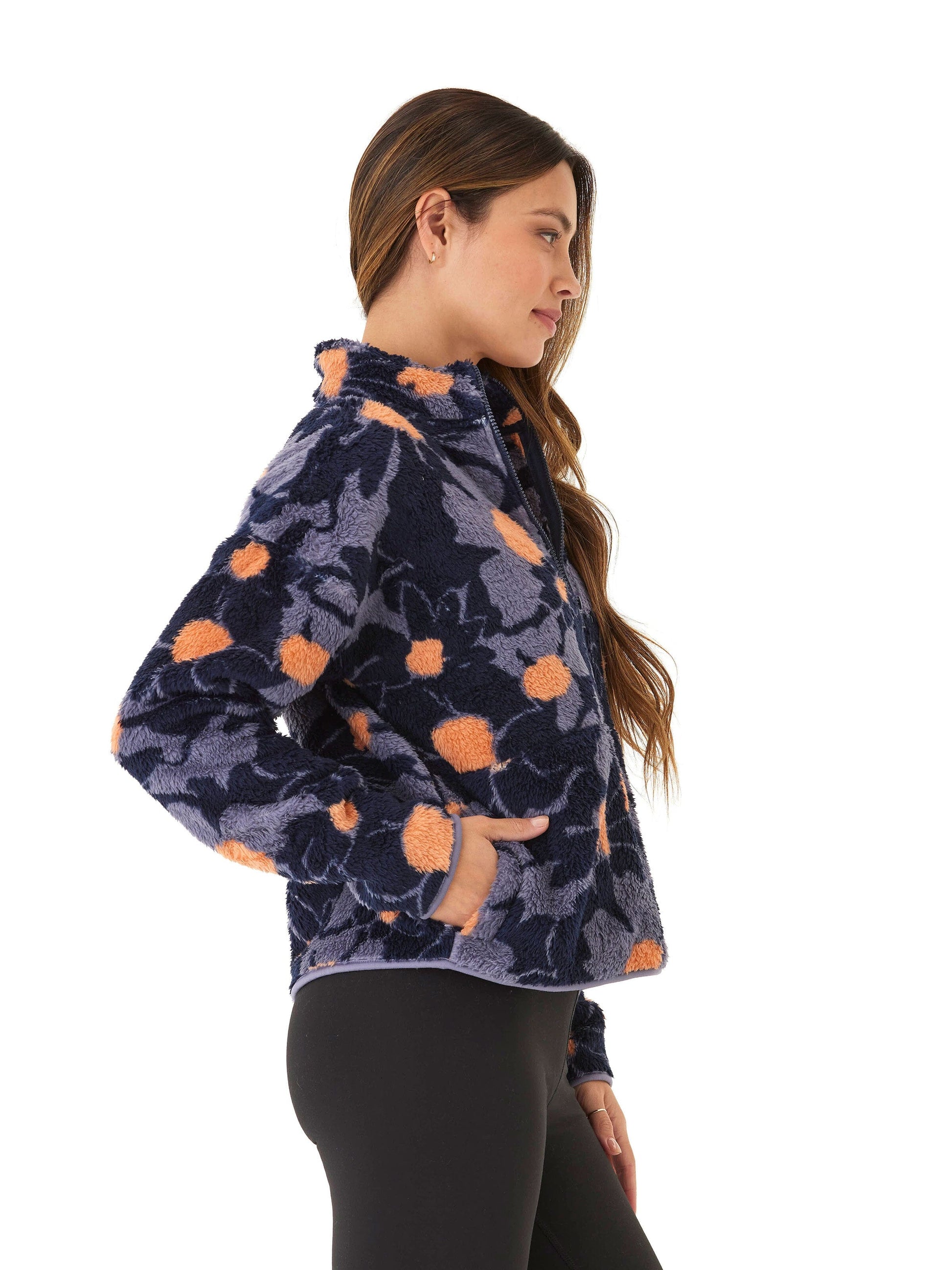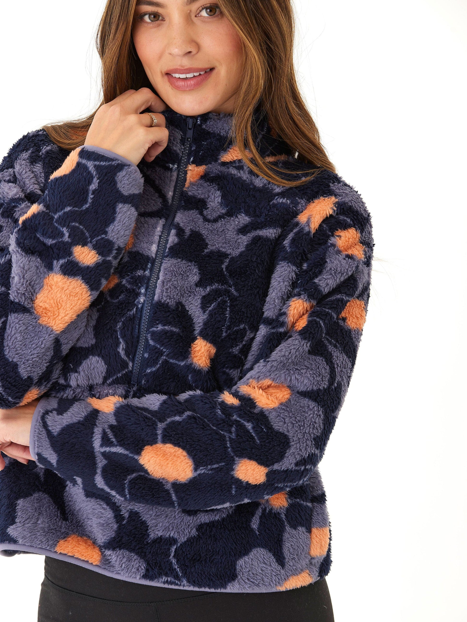 Josephine Abstract Bloom Print Sherpa 1/2-Zip