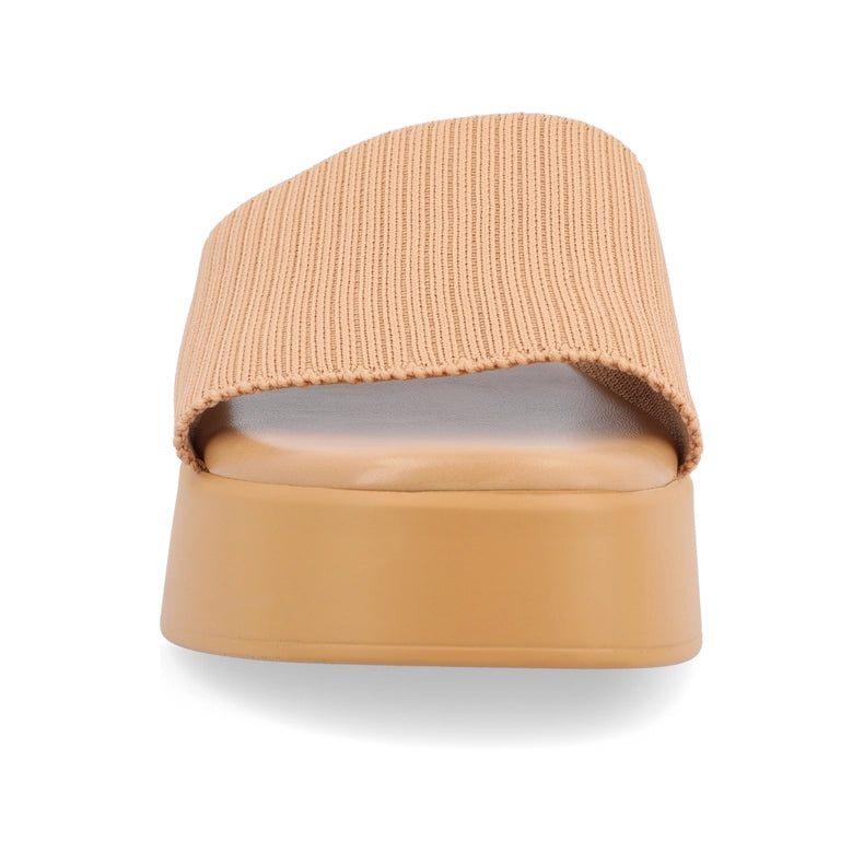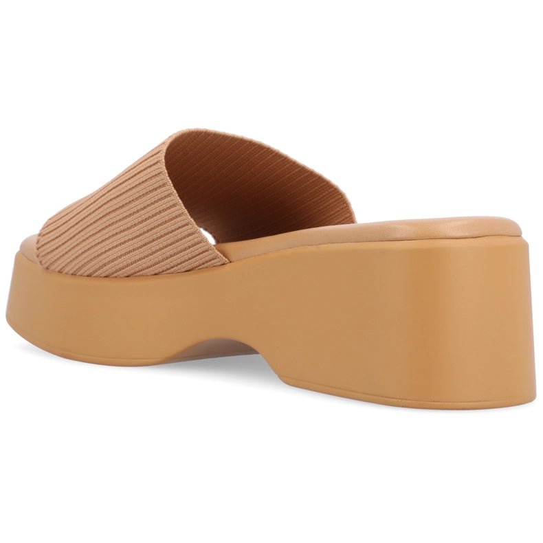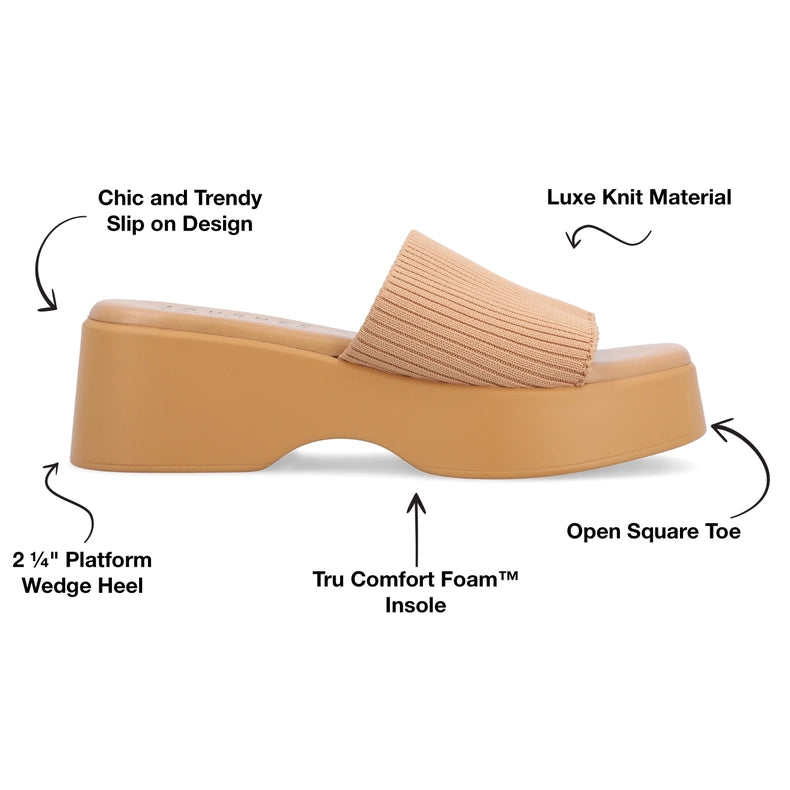 Elevate your style and comfort with the Emani Sandal from Journee Collection. Perfect for long walks around town, its 4 mm Tru Comfort Foam™ insole ensures all-day support. The mule style, open square toe, and knit material make it a must-have fashion statement. Just slip them on and go!