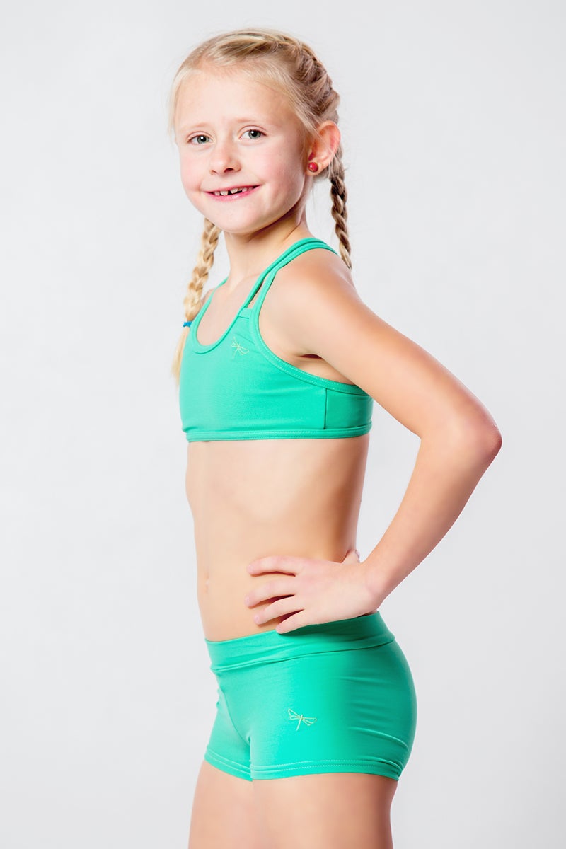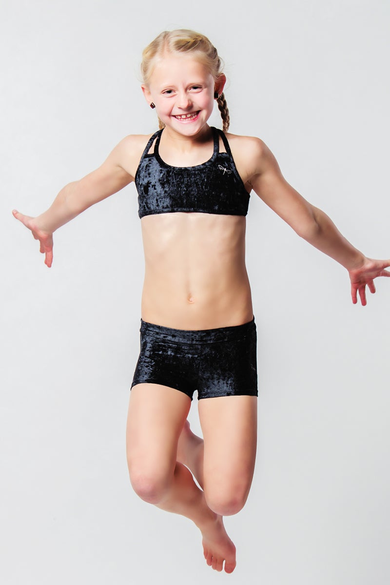 Elsa shorts are comfortable shorts for little pole dancers, gymnasts and contortionists. The longer-cut shorts cover everything that is supposed to be covered, but at the same time, they do not stop you from doing any pole trick. The waistband is double, so it holds nicely in place even during the most intense training. The shorts are decorated with the classic Dragonfly embroidery, which is a symbol of quality and comfort.