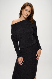 Knit Charcoal Maxi Dress with Dolman Sleeve