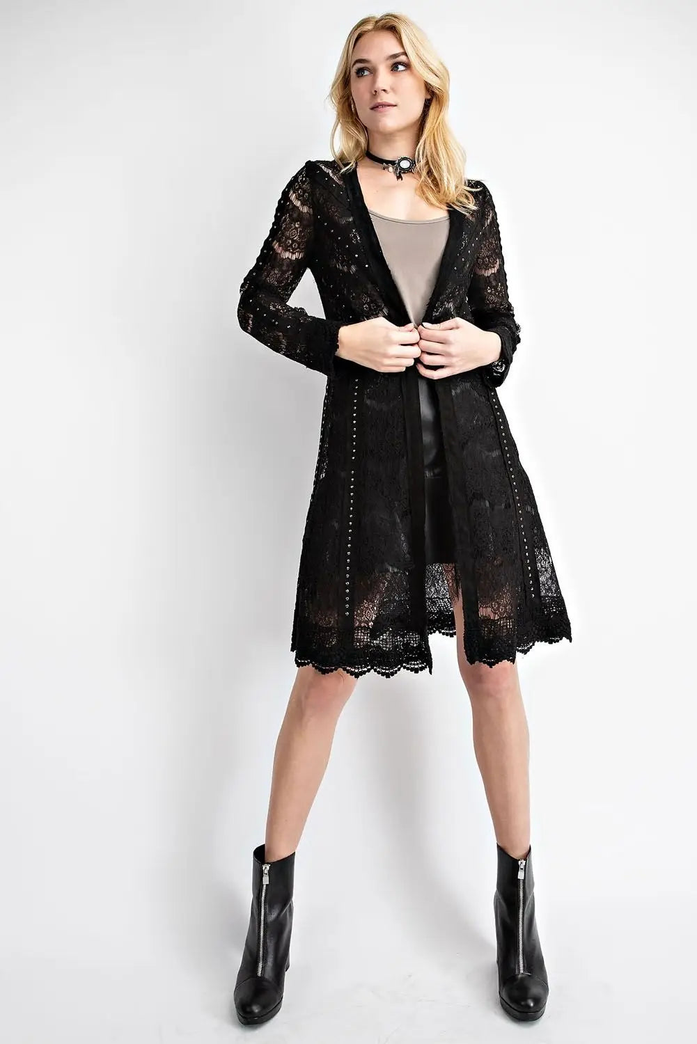 Lace Jacket With Studded Suede Details-Vocal-S-Urbanheer
