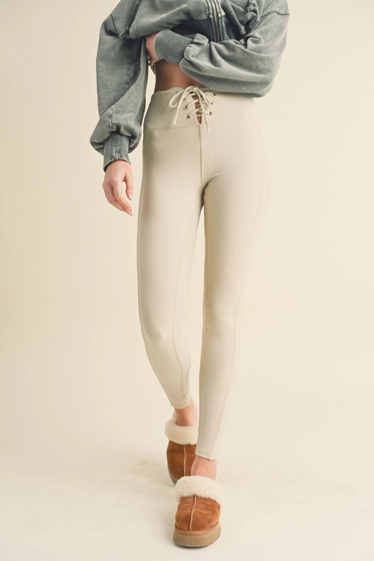 Lace Up Leggings Light Grey