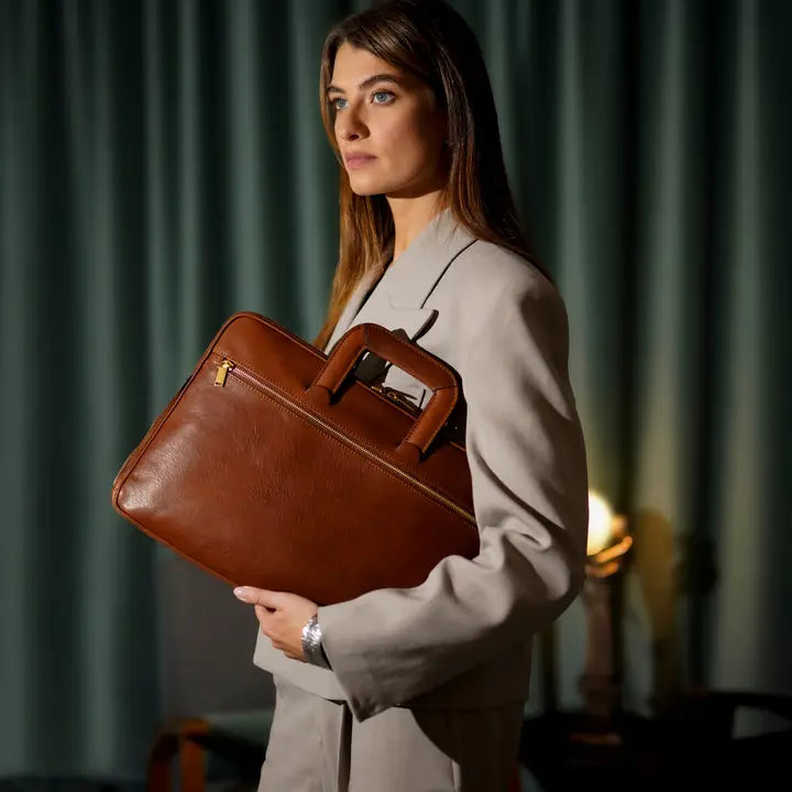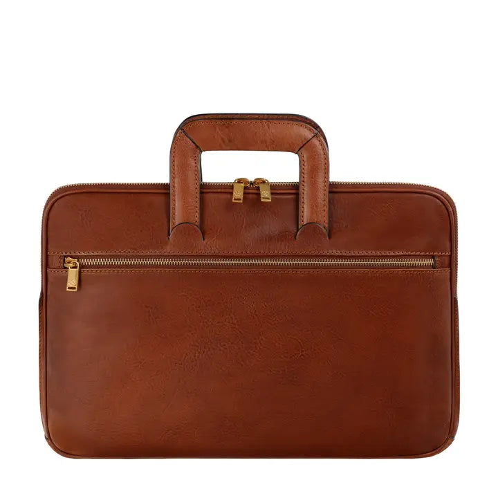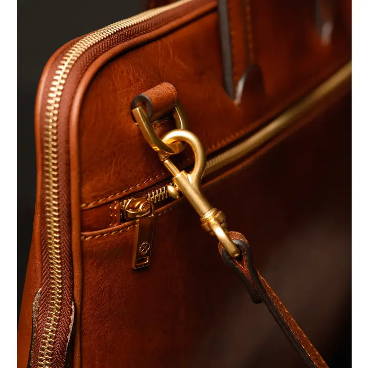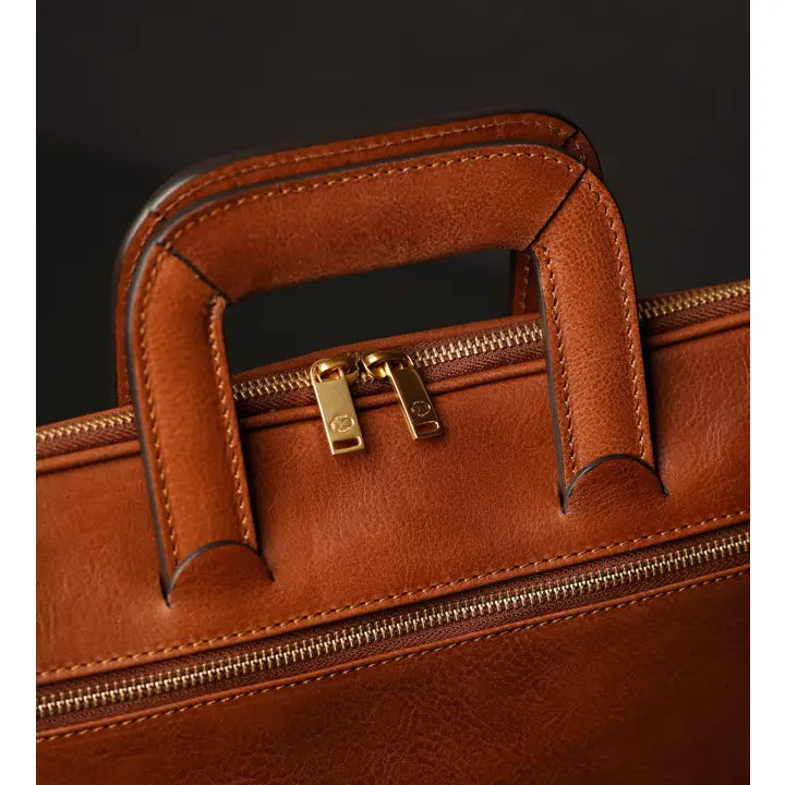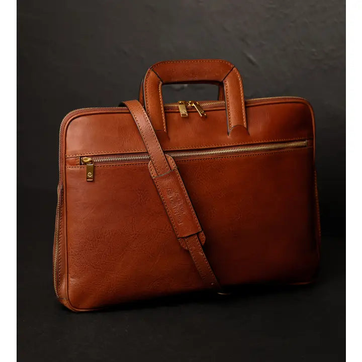 Leather Briefcase Laptop Bag - Brave New World Cognac