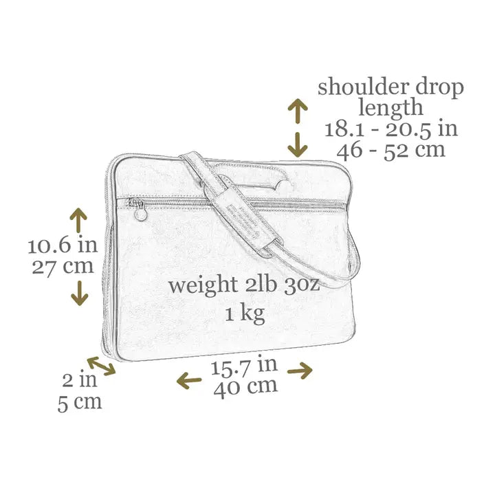 This full-grain leather briefcase combines durability with refined craftsmanship, featuring hand-dyed leather that balances a classic feel with modern design. It accommodates laptops up to 15”, including MacBook models, and offers a dedicated tablet pocket for quick access. An organizer panel keeps your smartphone, cards, and pens neatly arranged. Two carry handles can be discreetly tucked away, complemented by an adjustable, detachable shoulder strap for versatile carrying. Multiple compartments and pockets inside and out provide ample space for A4 documents and essentials, including a secure outside zip pocket for valuables within easy reach.