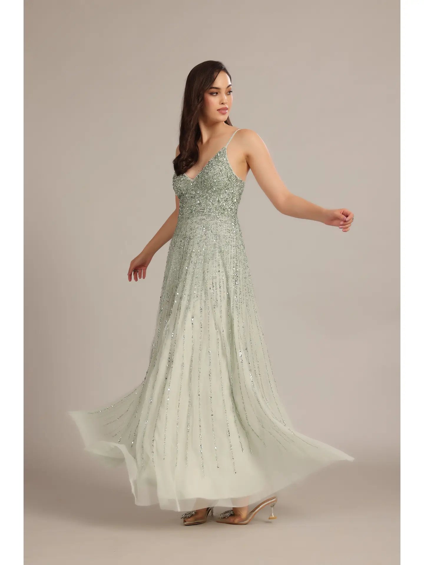 The Lace & Beads Legacy Embellished Maxi Dress in Sage Green offers refined elegance with its intricately detailed bodice and flowing floor-length skirt. Its deep V neckline and adjustable straps provide a tailored, comfortable fit, while the zip back closure ensures ease of wear. The soft sage green hue complements the flattering silhouette, making it an ideal choice for formal events such as black-tie affairs, galas, or evening weddings. Elevate your ensemble with sophisticated accessories for a polished, expert look.