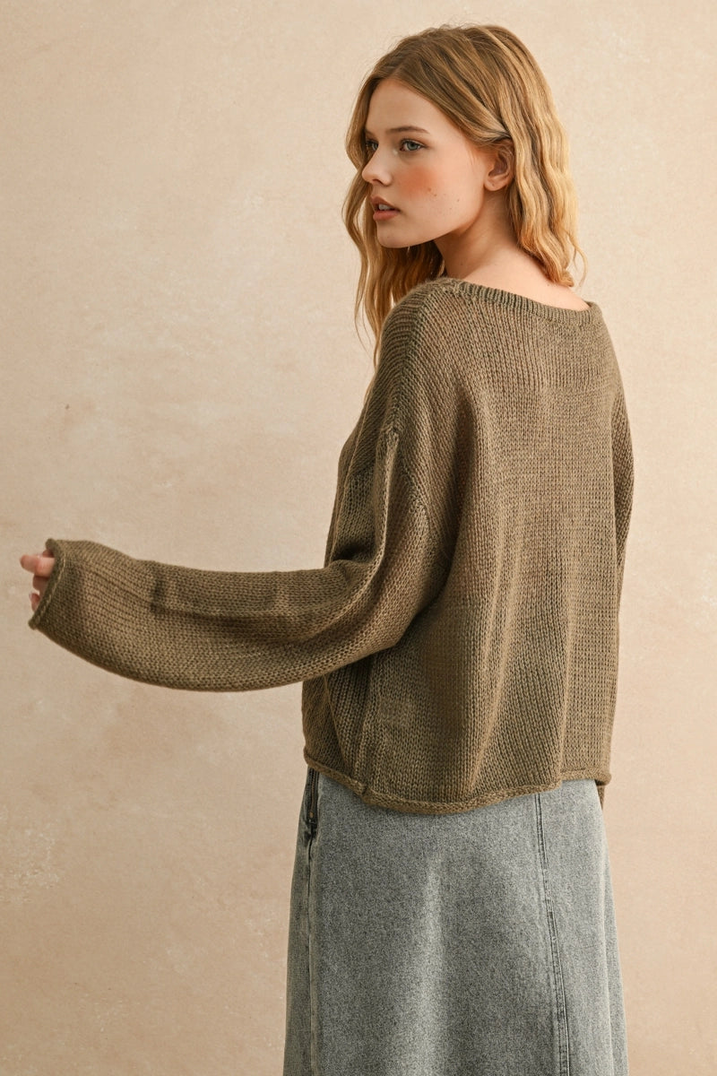 Effortlessly elegant, this lightweight knitted long sleeve top offers refined simplicity for the modern wardrobe. Crafted from breathable knit fabric, it drapes beautifully while maintaining its shape. The model, standing 5'7½", showcases the piece in size small, demonstrating how the top's proportions create a polished silhouette. Perfect for layering or wearing solo, this versatile essential transitions seamlessly from day to evening.