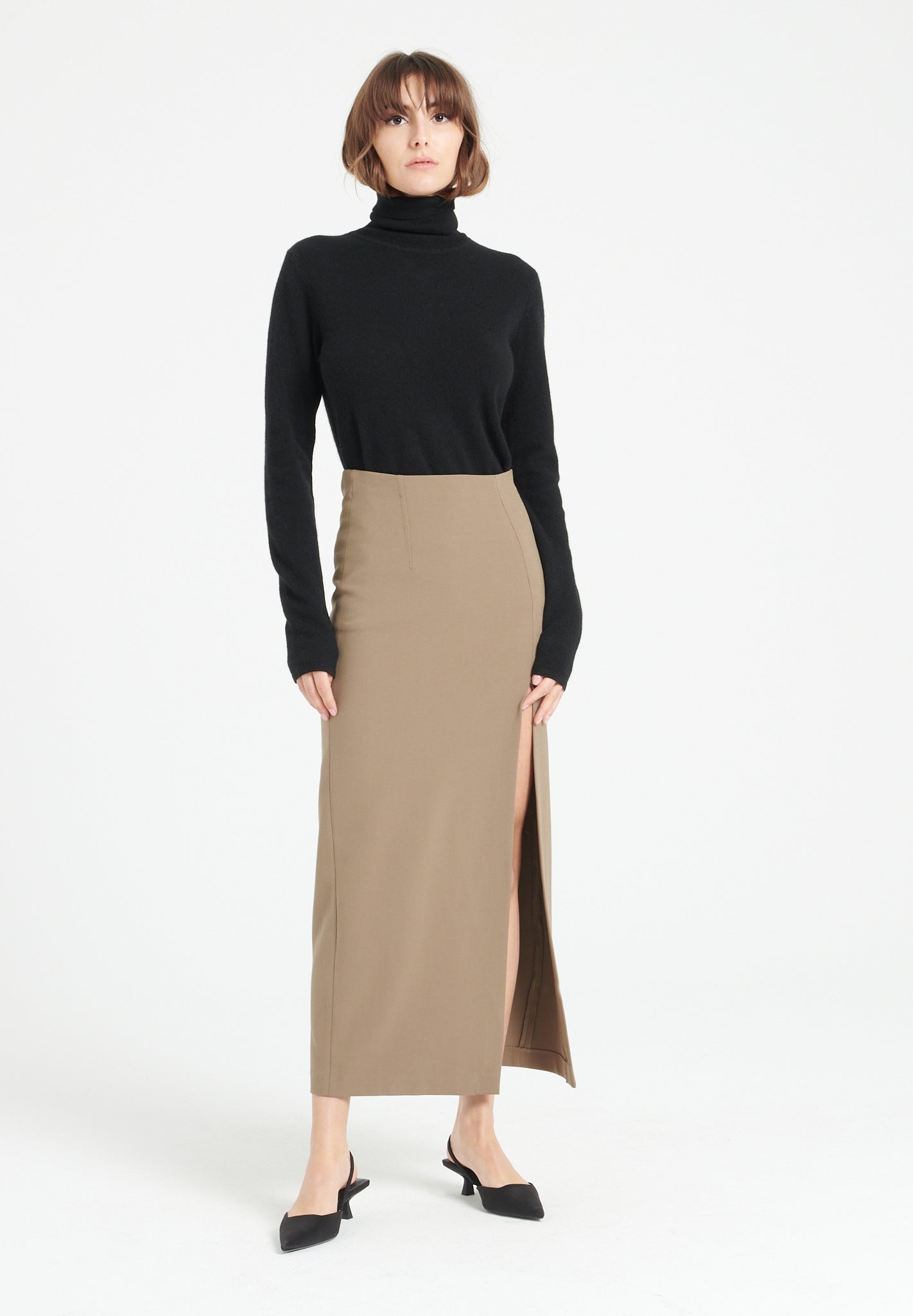 This turtleneck sweater from Studio Cashmere8 features a tailored fit and is distinguished by its clean, streamlined silhouette. The hem and cuffs are finished with a tubular edge, providing enhanced structure and refinement. Versatile in style, it pairs effortlessly with tailored trousers or a midi skirt for a polished look.