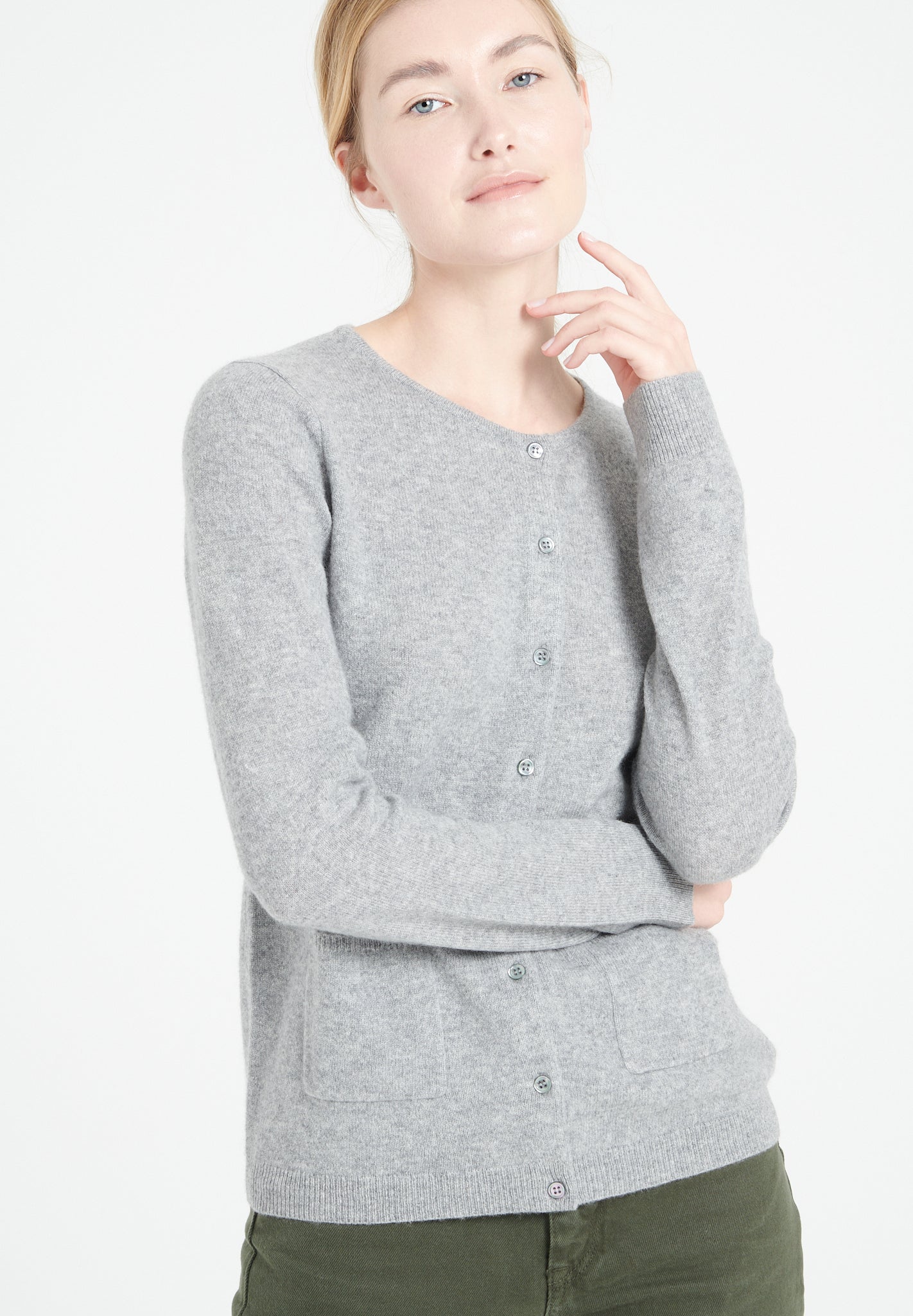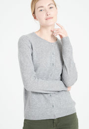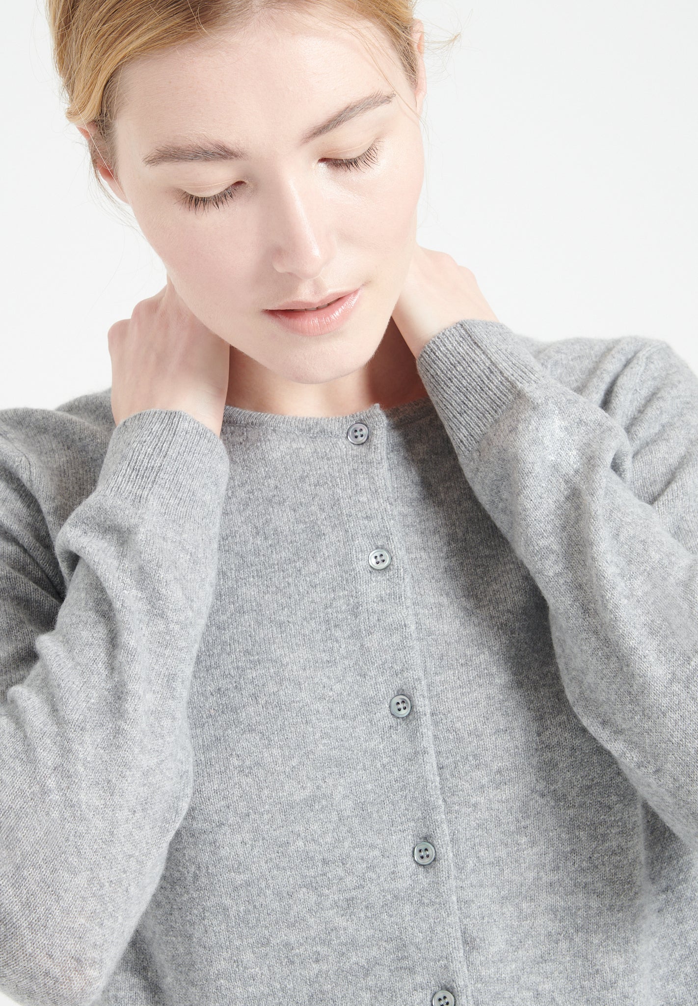 LILLY 4 Cardigan col rond en cachemire cintré gris clair