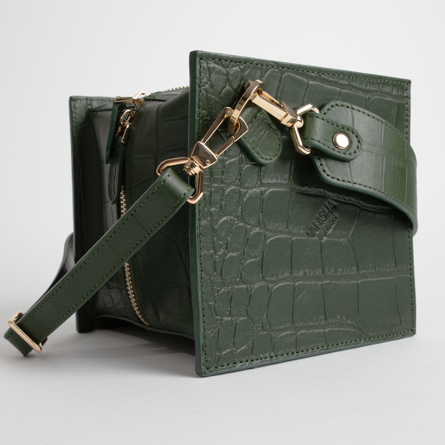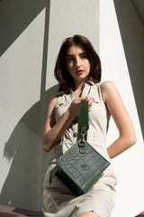 Crafted from luxurious leather, meet the Lola bag in pine green crocodile print. Just the right size to fit all your essentials, it can be worn interchangeably as a shoulder or a crossbody bag for any look