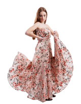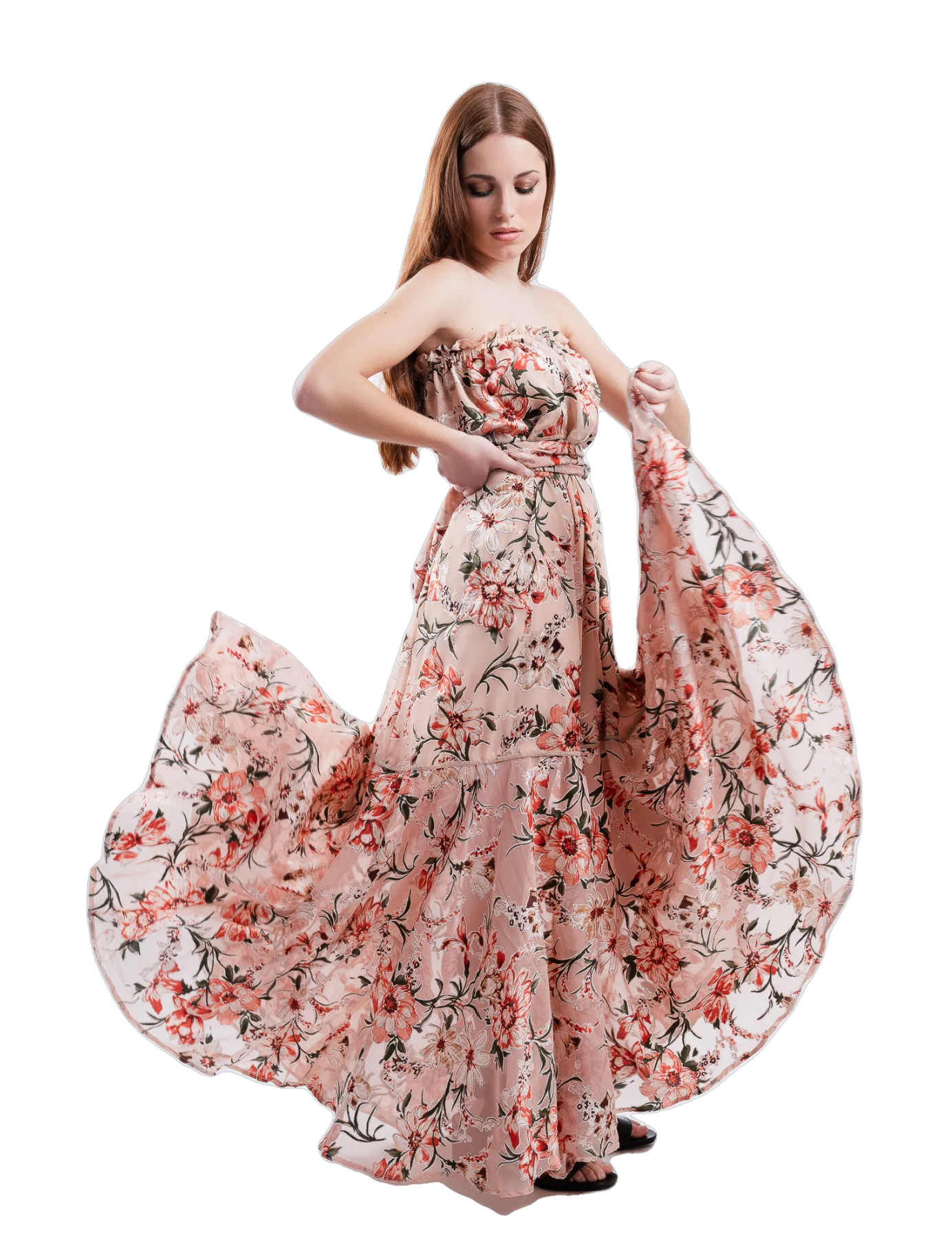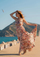 The Laylah dress is unique, spectacular and very romantic. Authentic glamour. Made with Georgette fabrics (viscose), they are vaporous fabrics with a length of no less than 8 meters of fabric. This stunning dress with an elastic strapless neckline is tied under the chest with a bow of the same fabric giving an ablused shape to the upper part and dropping a large canvas of fabric cut and joined with subtle decorations of cotton dyed in the same color as a skirt. Day or night, for parties and celebrations, the Laylah dress will make you feel like a very special and powerful woman.