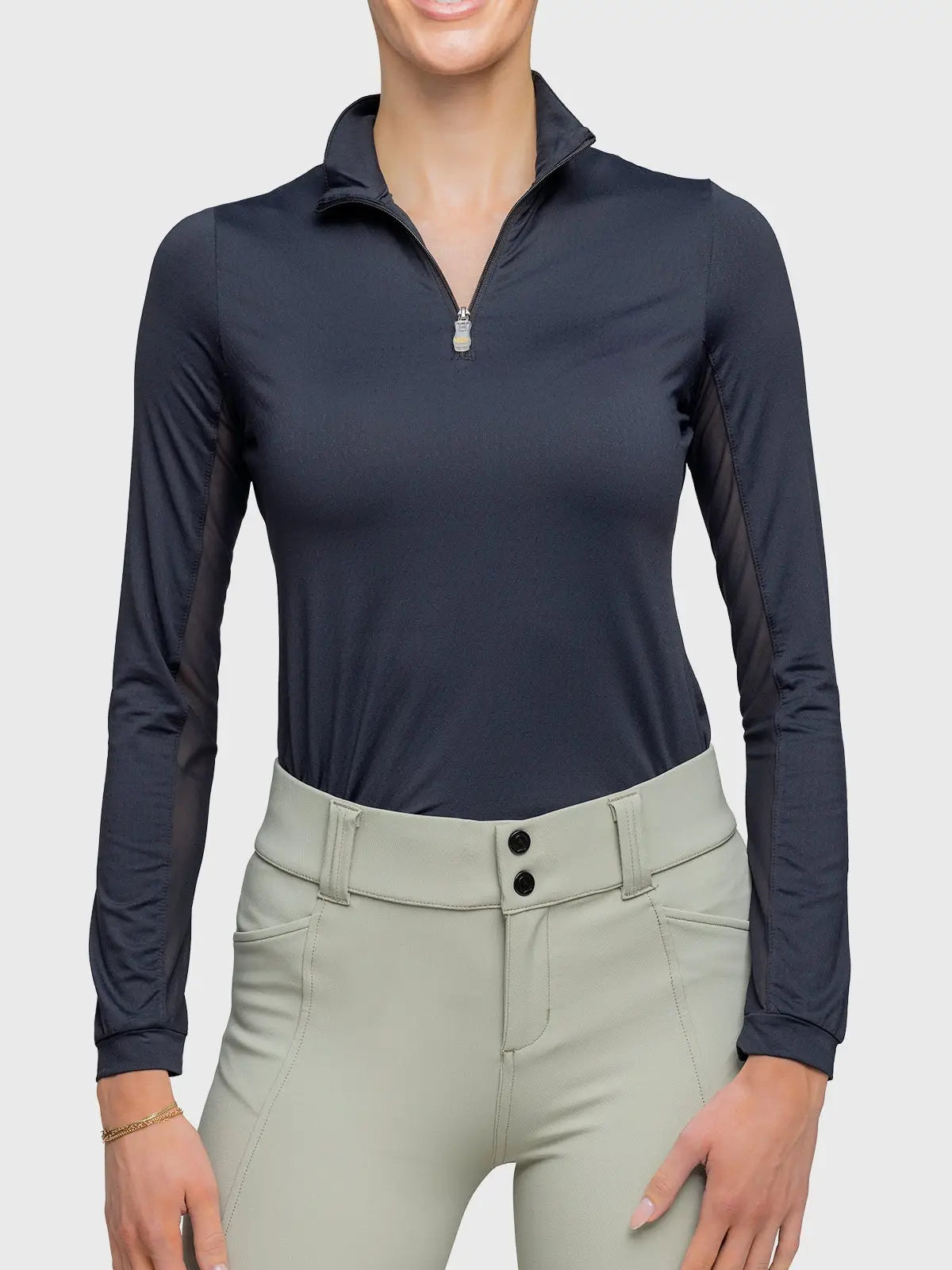 This Long Sleeve Black Tonal Crystal Crown top combines functionality with refined style. Featuring UPF 30+ protection to shield your skin from harmful rays, it incorporates breathable power mesh sleeves for enhanced ventilation. The soft 4-way stretch fabric, made from a polyester-spandex blend, ensures unrestricted movement and comfort. Finished with antibacterial odor resistance, this sleek piece maintains freshness throughout your day while its subtle black crystal crown adds just the right touch of understated elegance. Ideal for those who demand performance without compromising on style.