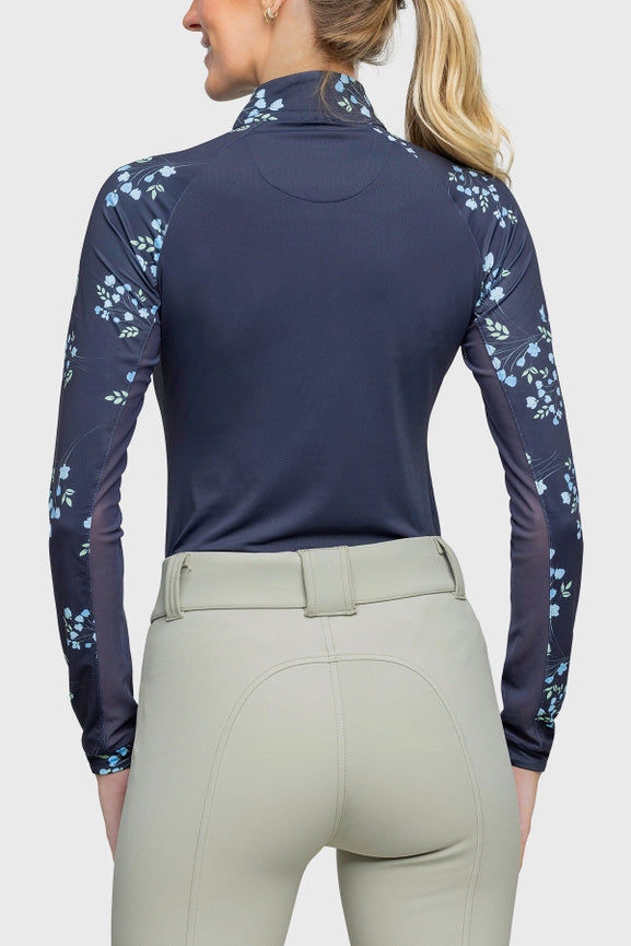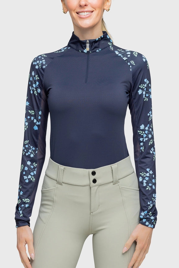 Long Sleeve Navy Rosebud Raglan 1/4 Zip Shirt