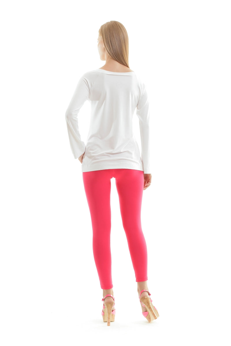 This super soft Shirts We Love long sleeve tee creates a relaxed yet sophisticated look. An abstract print adorns the front while a wide rounded neck with off shoulder tendencies lends effortlessly sexy appeal. Wear it with skinny jeans, cut off shorts or a skirt! Rhinestone Shirts We Love logo discreetly adorns the front lower left side. Wide rounded neckline with raw edge detail. Long sleeves. Model shown is 178cm (5'10'') and is wearing UK size 10.