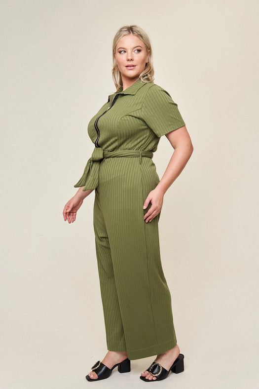 Meet your new wardrobe staple, the "Lucia" Knit Belted Jumpsuit in Olive. This high-quality knit rib jumpsuit offers the perfect balance of stretch and structure for a comfortable yet tailored look. The exposed zipper and working belt with loops add character and waist definition. Made in the USA, this versatile jumpsuit can easily go from work to happy hour with a change of shoes.