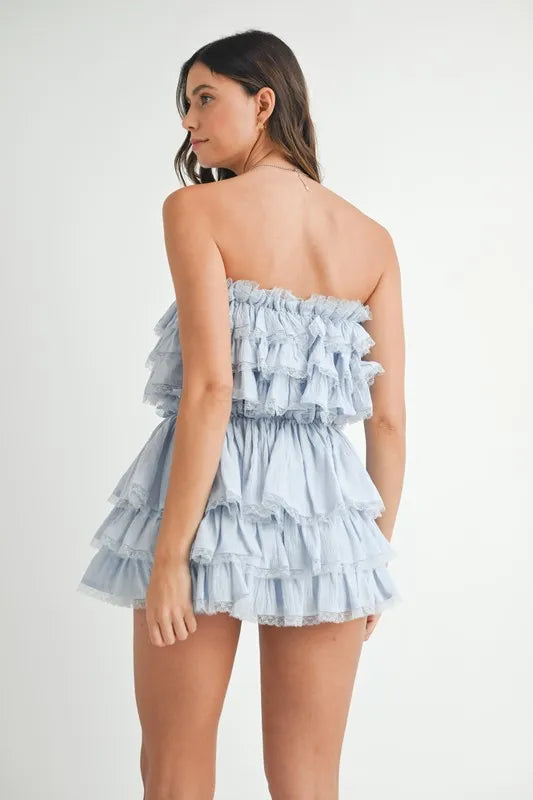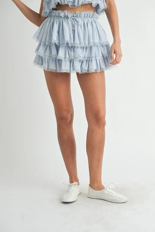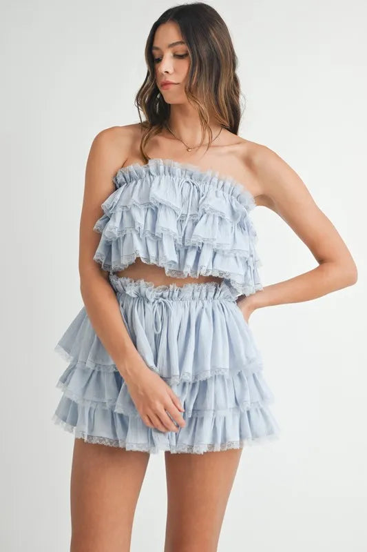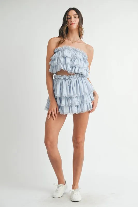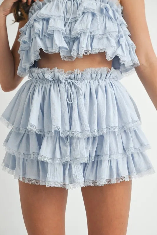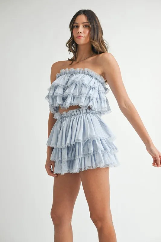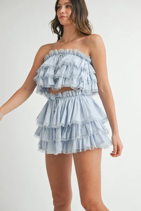 MABLE Ruffle Layered Crop Top and Mini Skirt Set