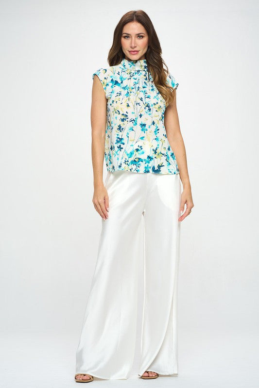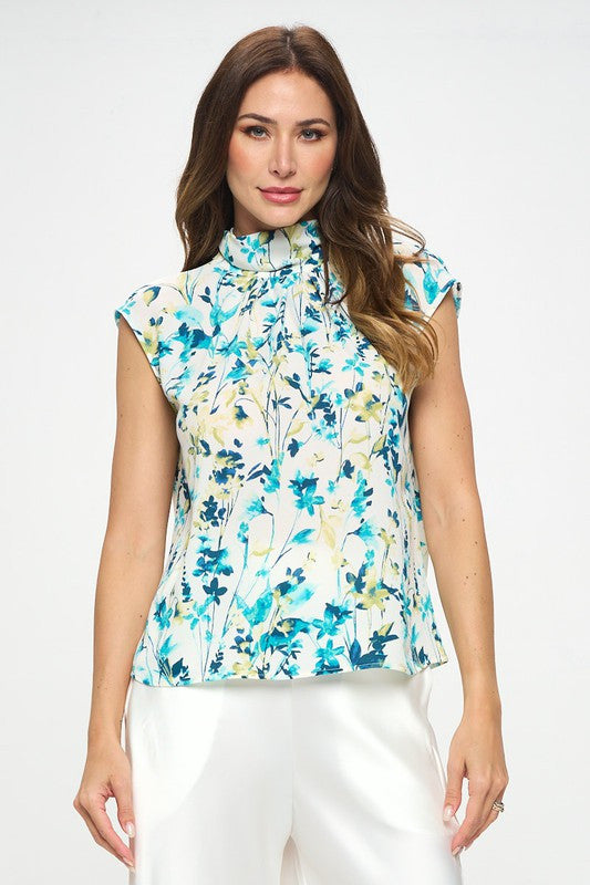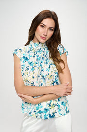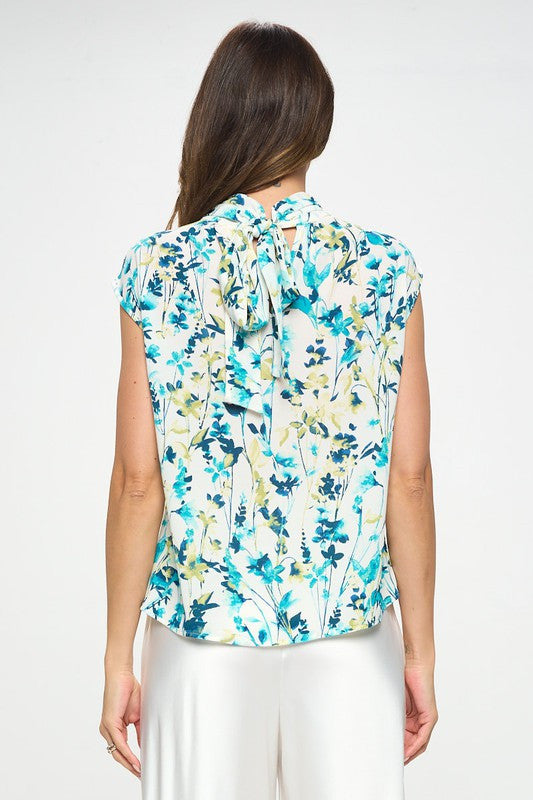 Made in USA Floral Print Short Sleeve Top with Back Tie