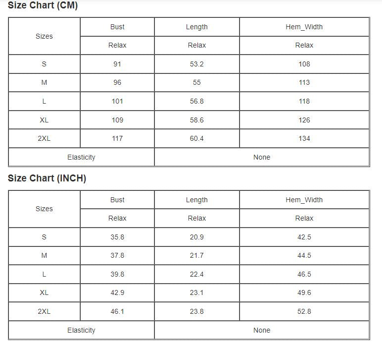 Sizing:
