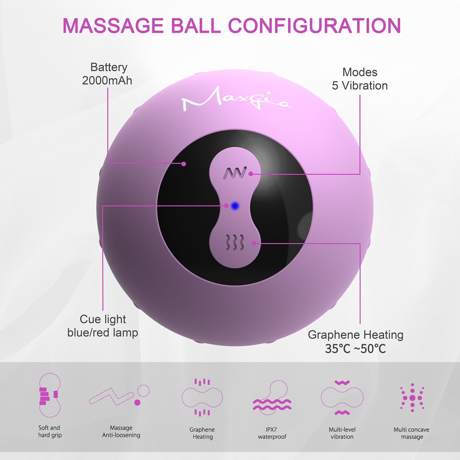 Maxgia Heating Peanut Massage Ball, Double Ball, Purple