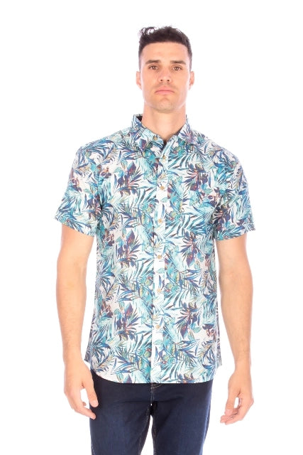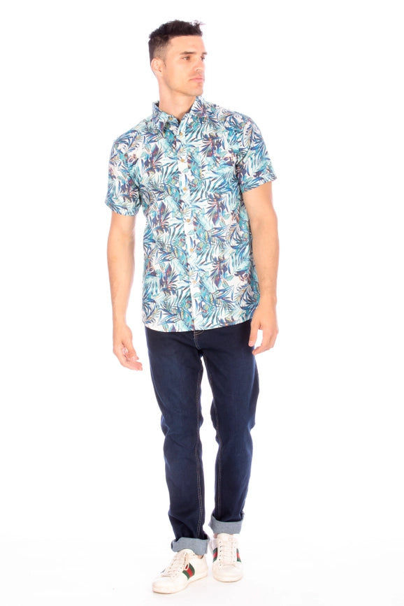 Men's Printed Woven Hawaii Floral Short Sleeve Cotton Shirt ( #240)