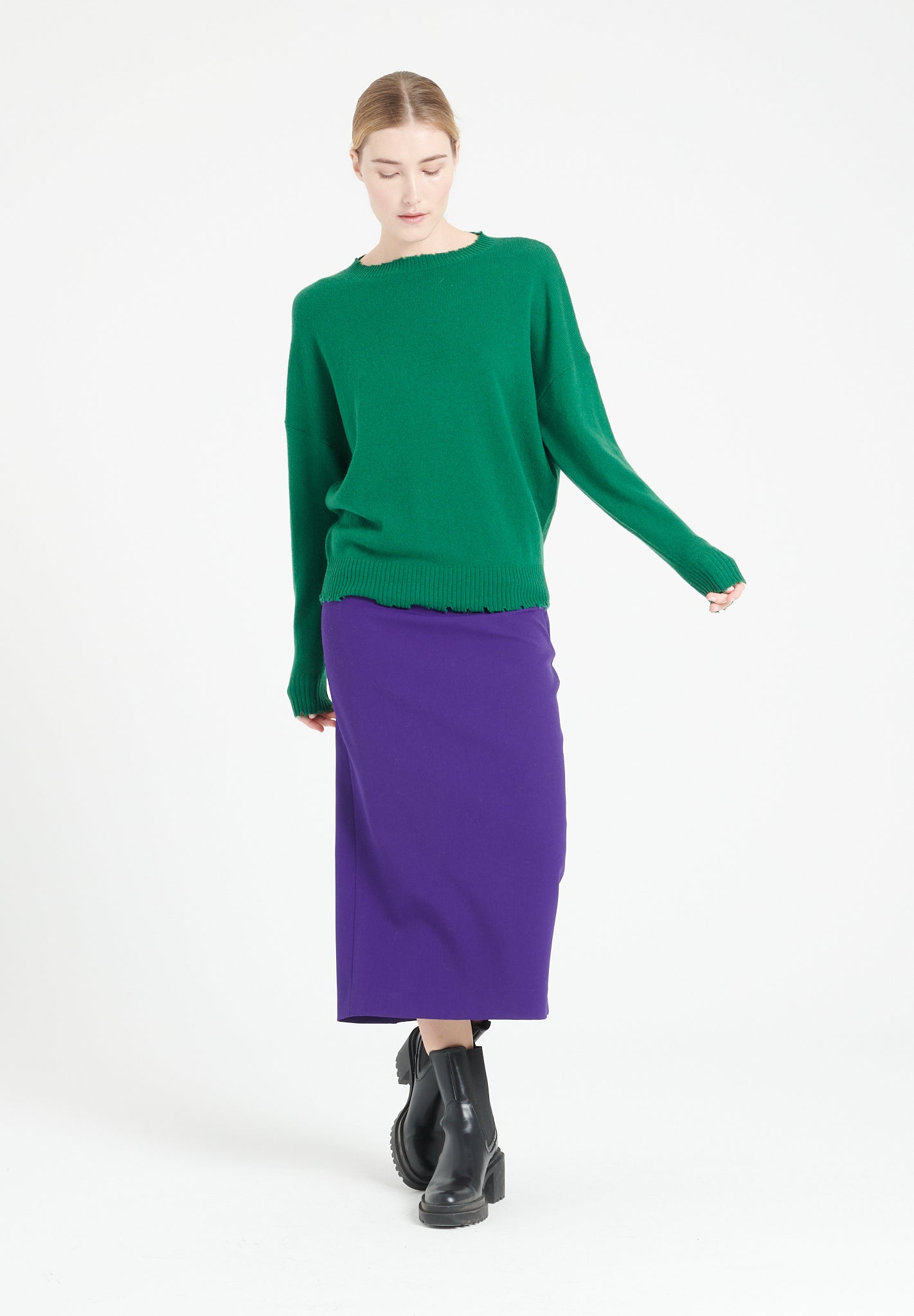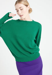 MIA 17 Pull col rond en cachemire avec finitions ciselées vert émeraude