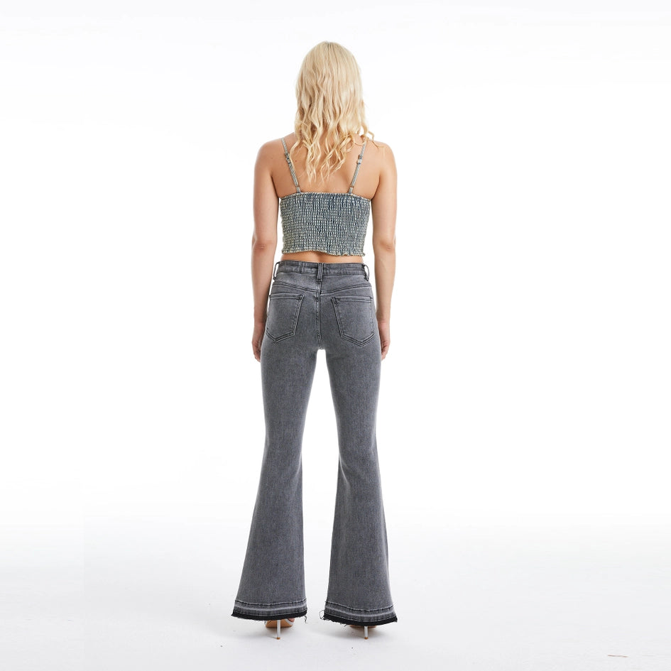 Mid Rise Flare Jeans with Raw Hem HEATHER GRAY
