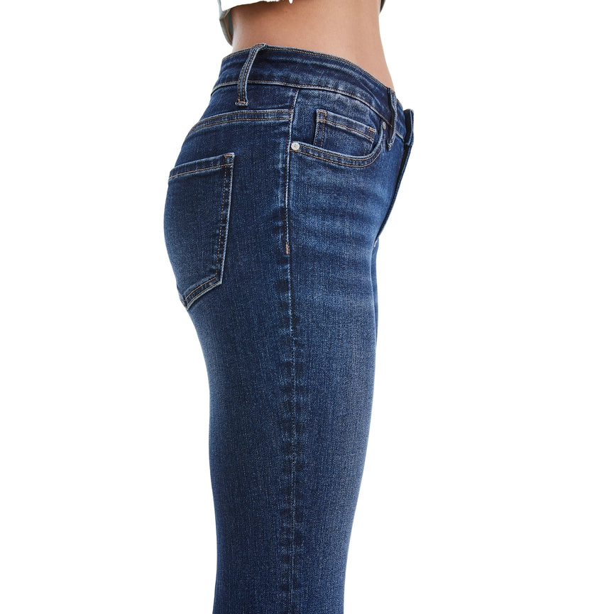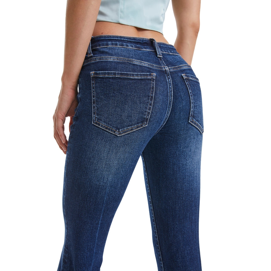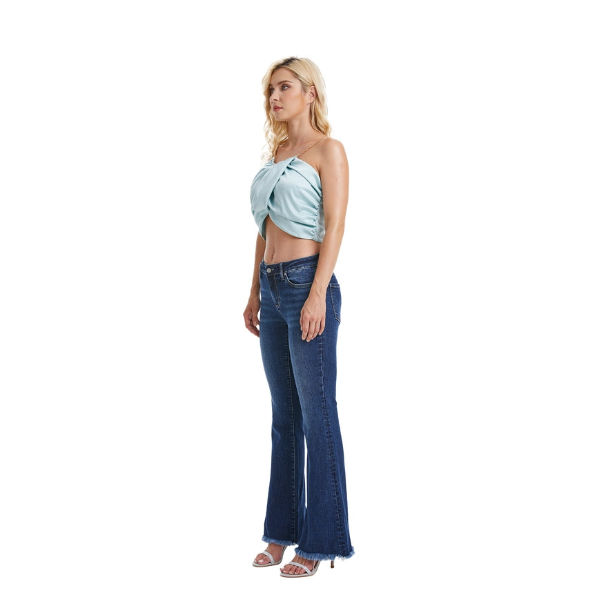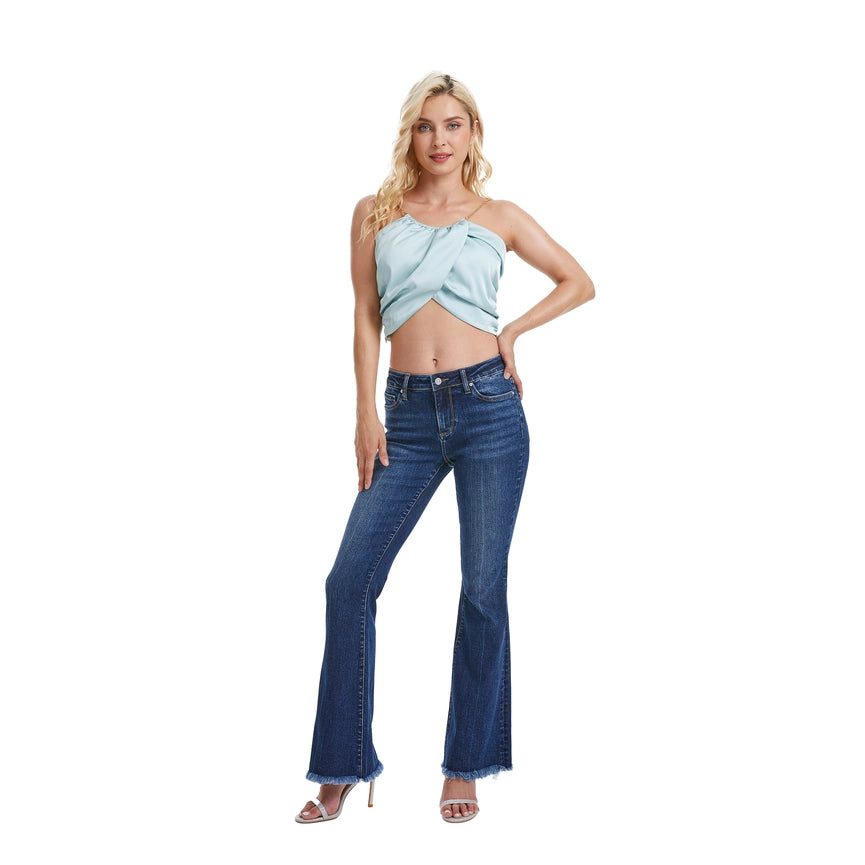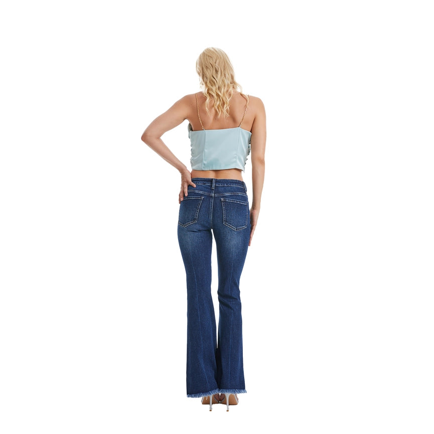 Mid Rise Flare Jeans(Frayed Hem,Crease Line) DEEP SEA-Jeans-BAYEAS-24-DEEP SEA-Urbanheer