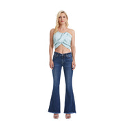 Mid Rise Flare Jeans(Frayed Hem,Crease Line) DEEP SEA