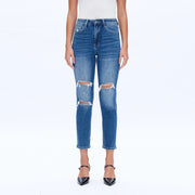 Mid Rise Mom Jeans with Finished Hem DARK BLUE